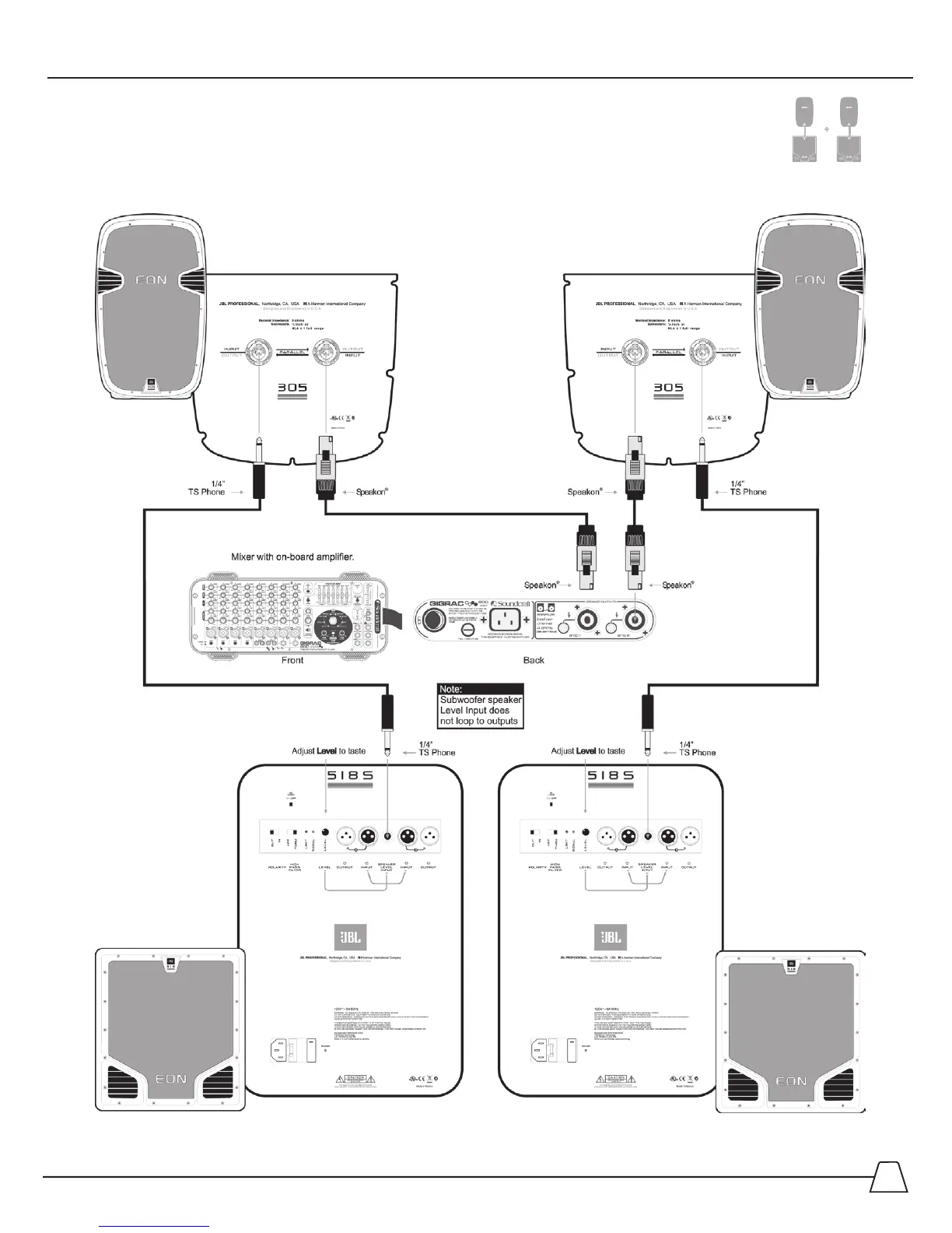 JBL EON 315 - PA Using Powered Mixer And Powered Subwoofers