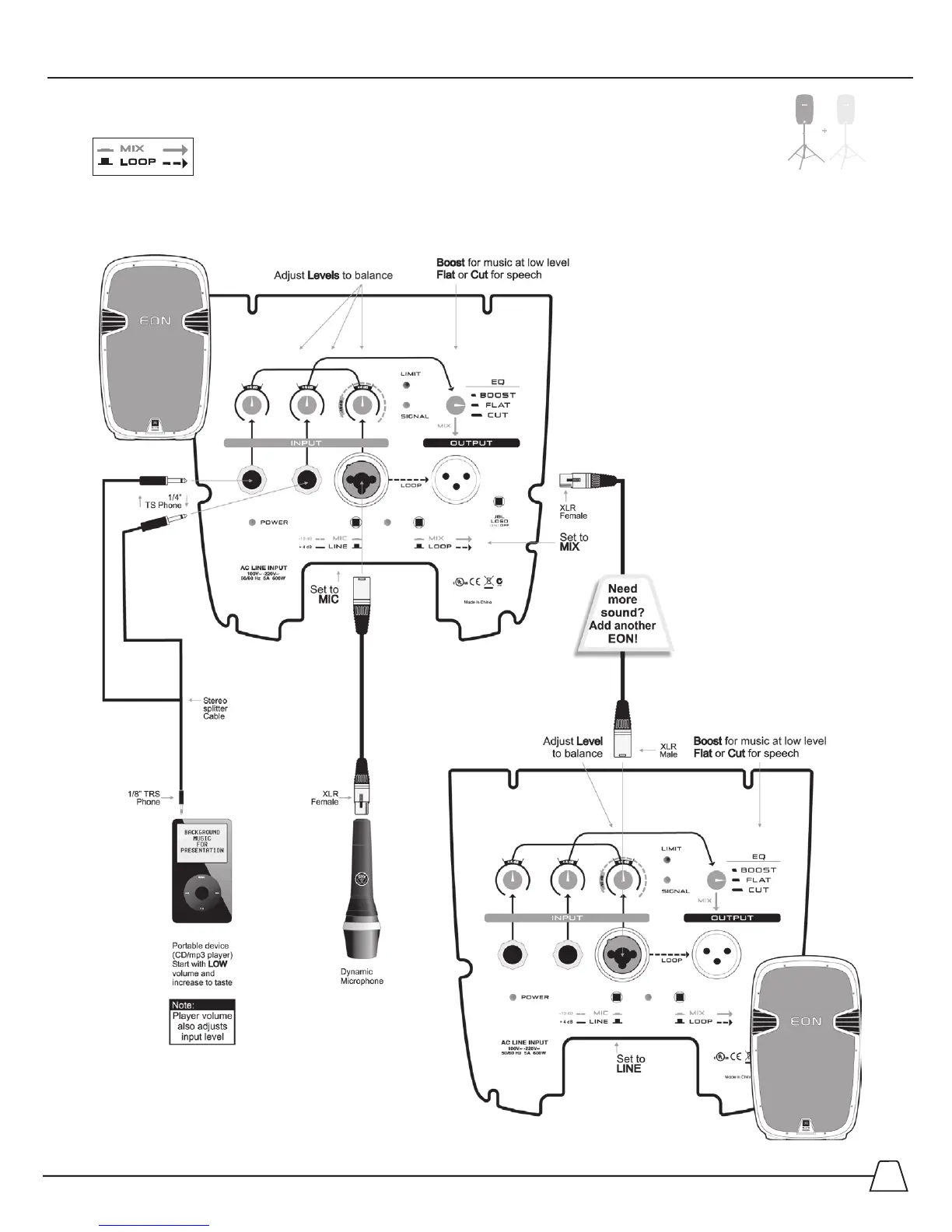 JBL EON 510 - Section 6: Application Examples; Simple PA Using Built-In Mixer