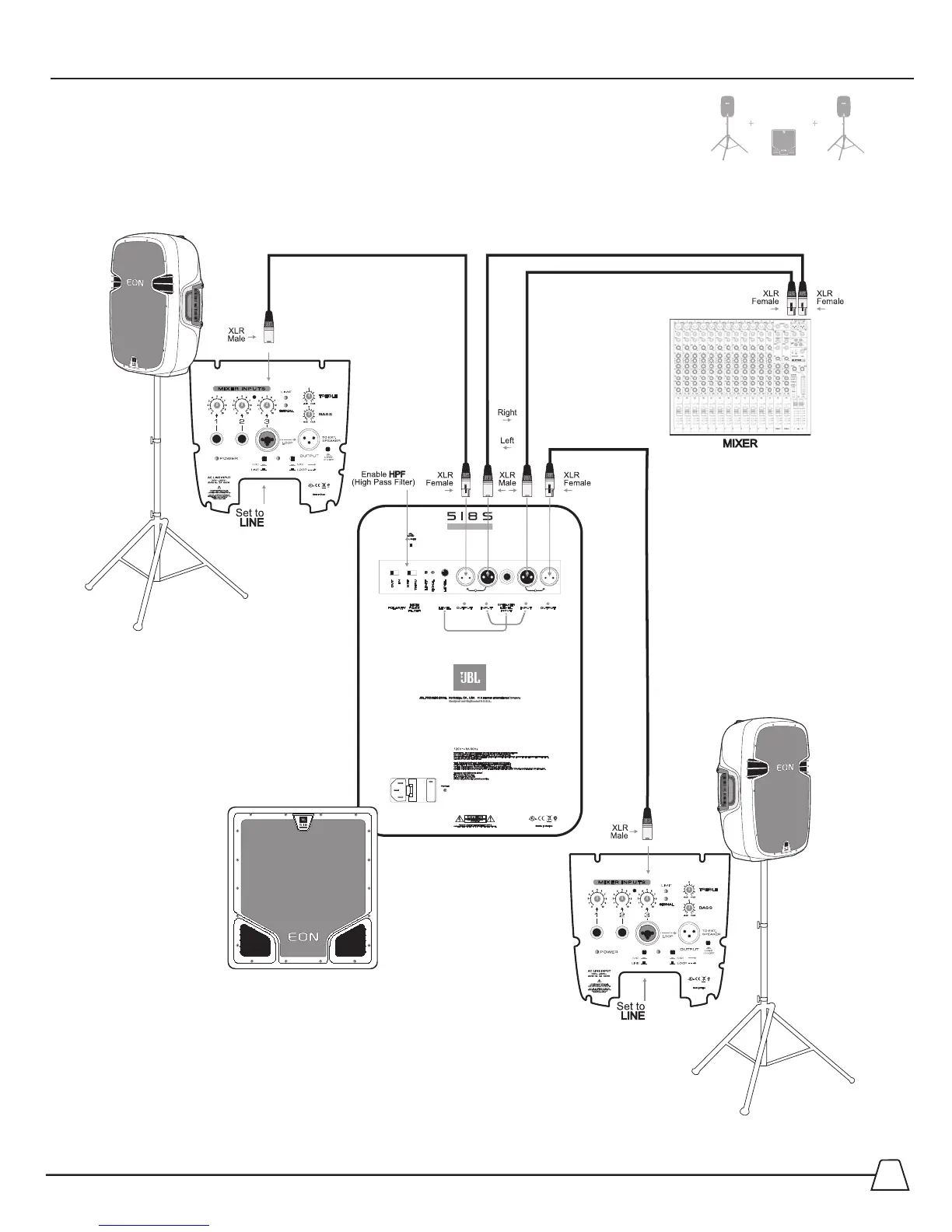 JBL EON 515 XT - Application Examples - PA with Subwoofer; Simple PA Using External Mixer and Subwoofer