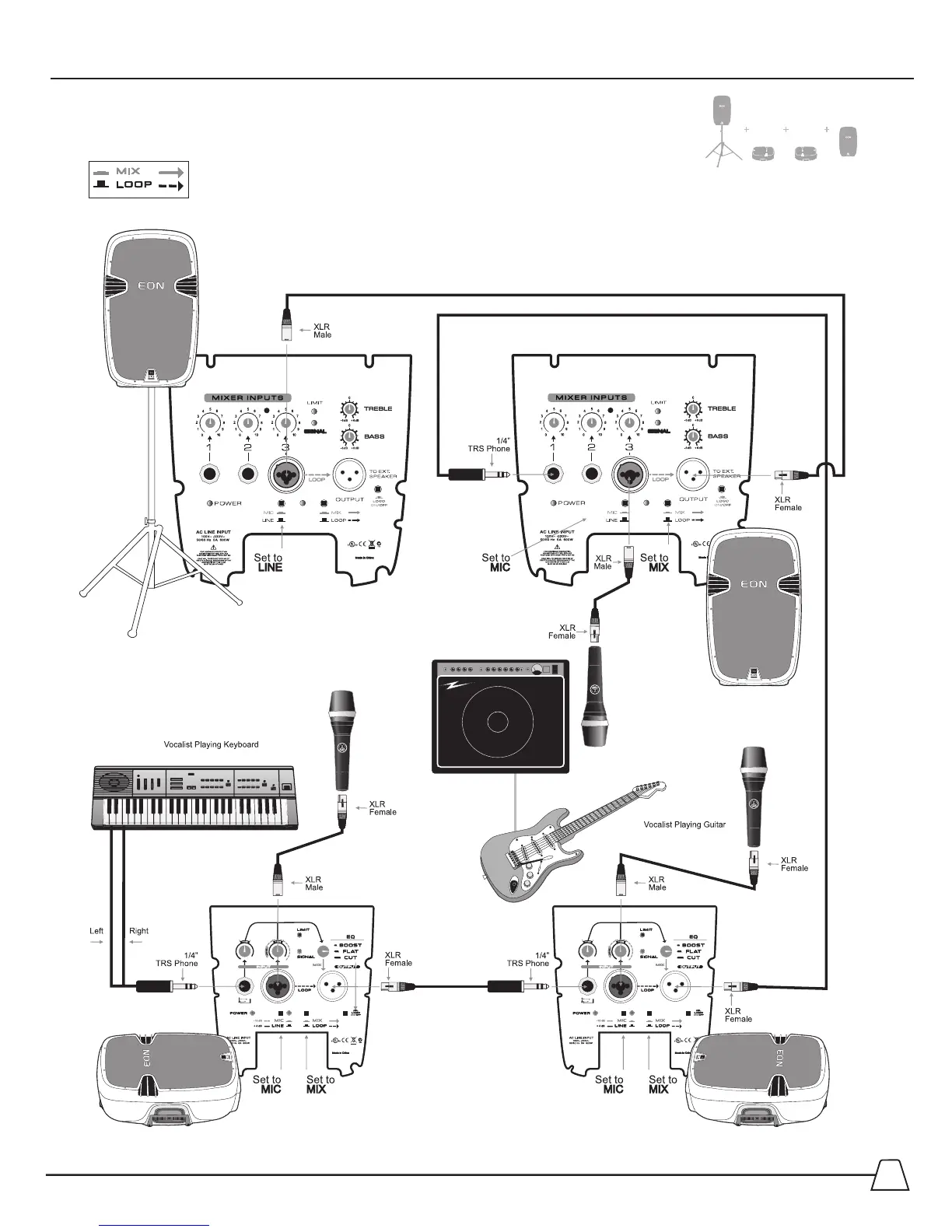 JBL EON 515 XT - Application Examples - Gigging; PA System With Powered Mains and Floor Monitors