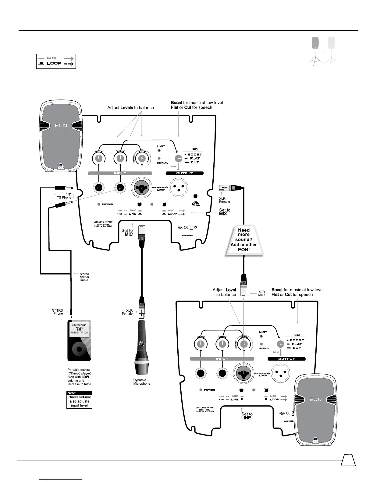 JBL EON 515 - EON305 Application Examples; Simple PA with Built-In Mixer