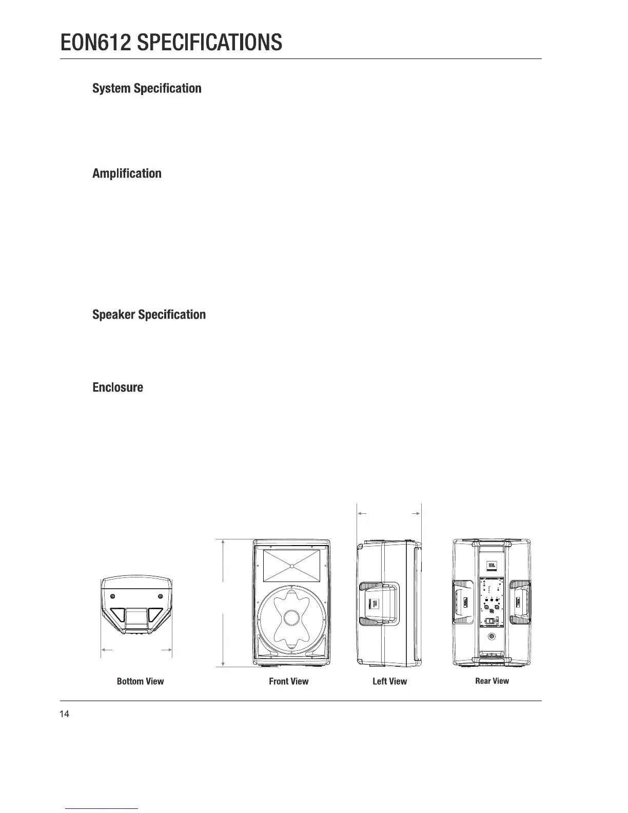 LF Driver: 1 x JBL 612H 380mm (12 in) woofer