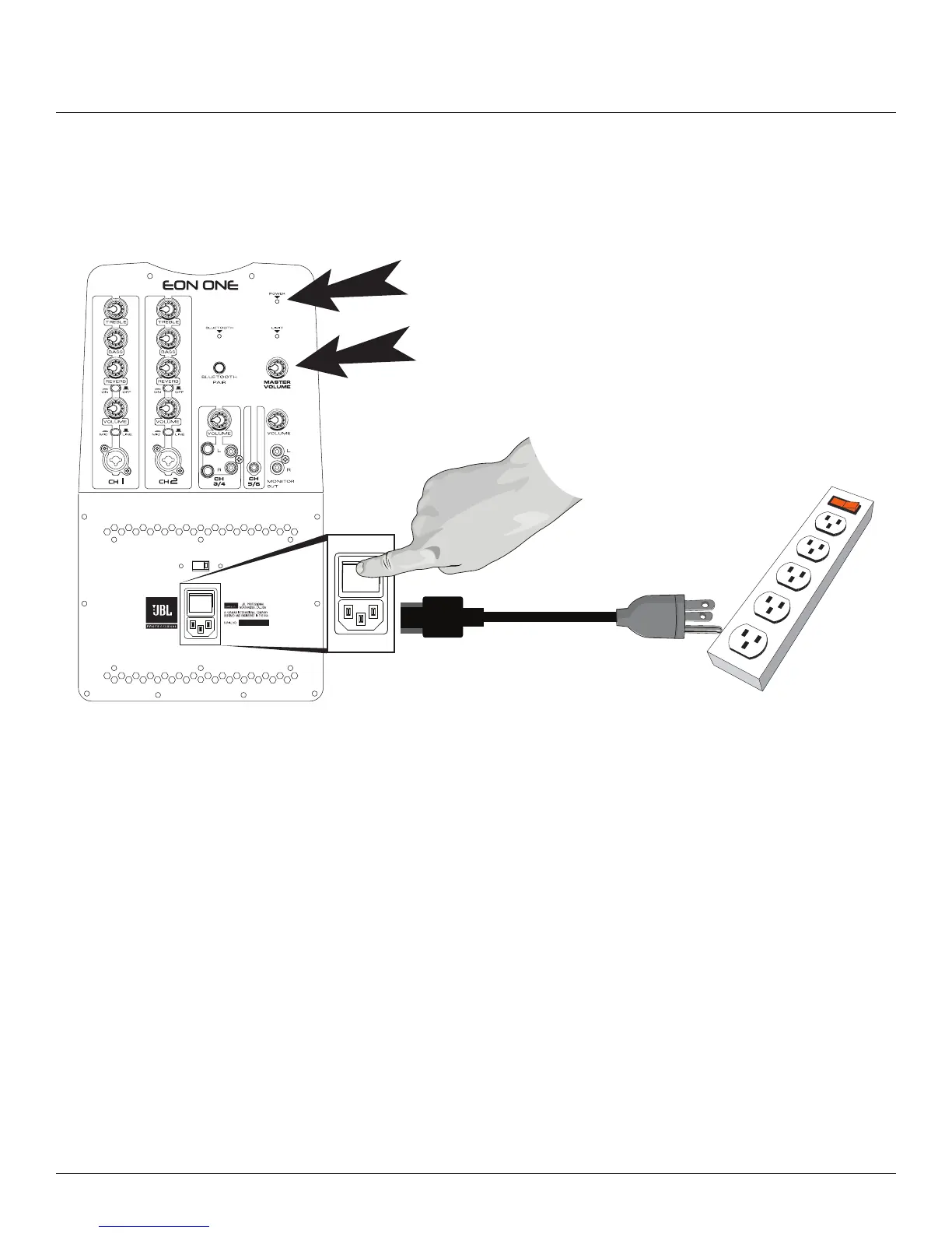 extension cord� Turn the “MASTER VOLUME” control all the way to the left� Now turn the power switch to