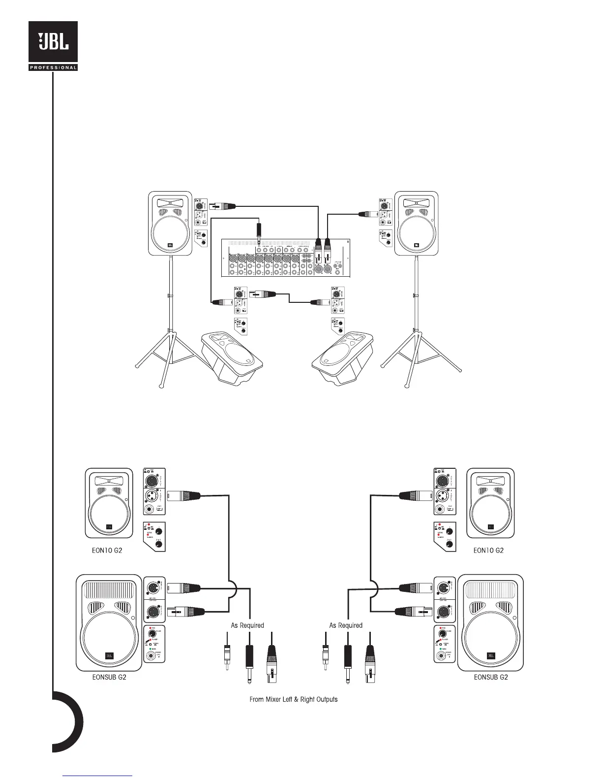 Here’s a system with EONSUB G2 added to provide additional low-frequency power. If your mixer has a