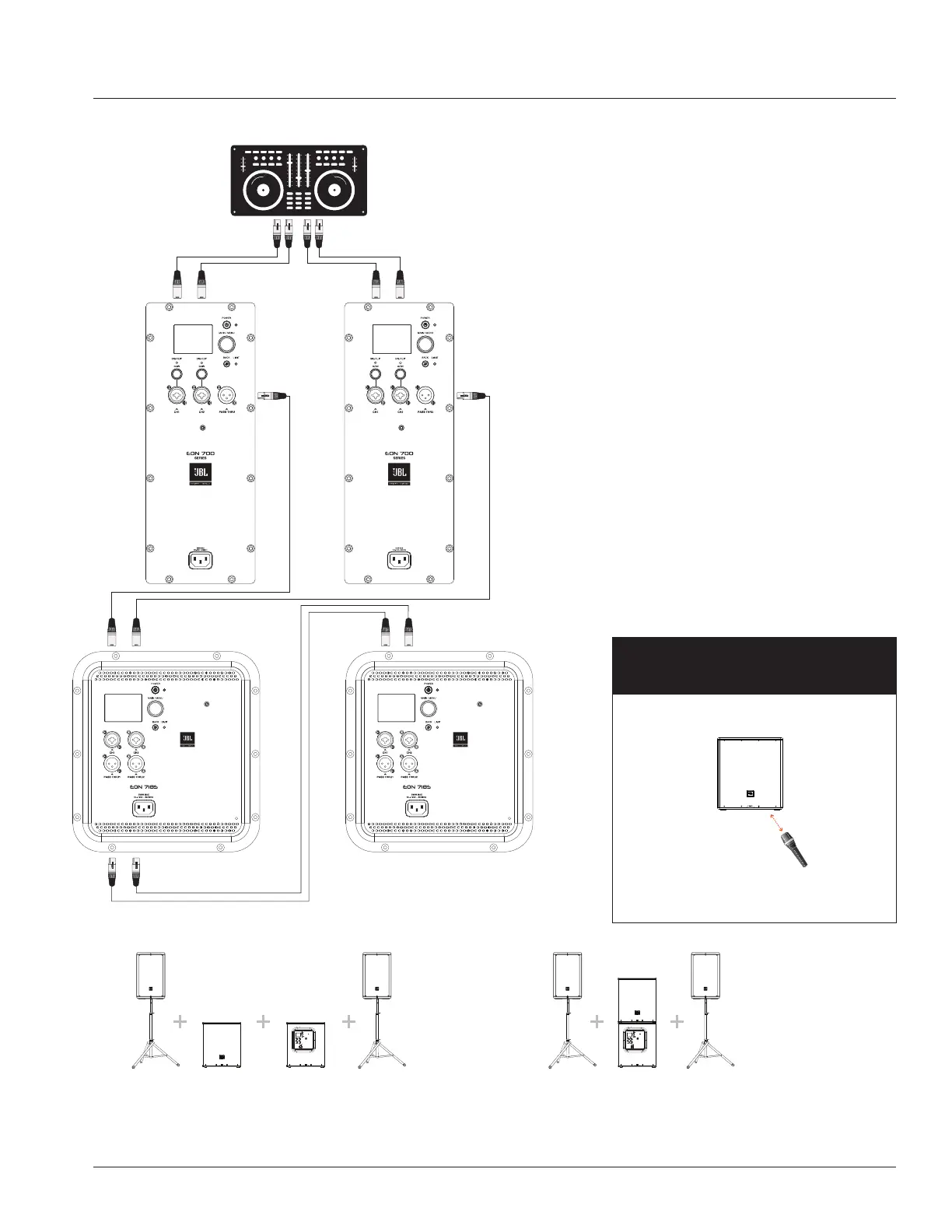 • Run BOTH Full range EON700 series speakers
