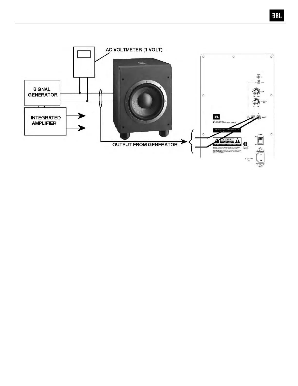 1) From the signal generator, connect line level (RCA) cables to the Subwoofer Line Level Input jacks L/R on