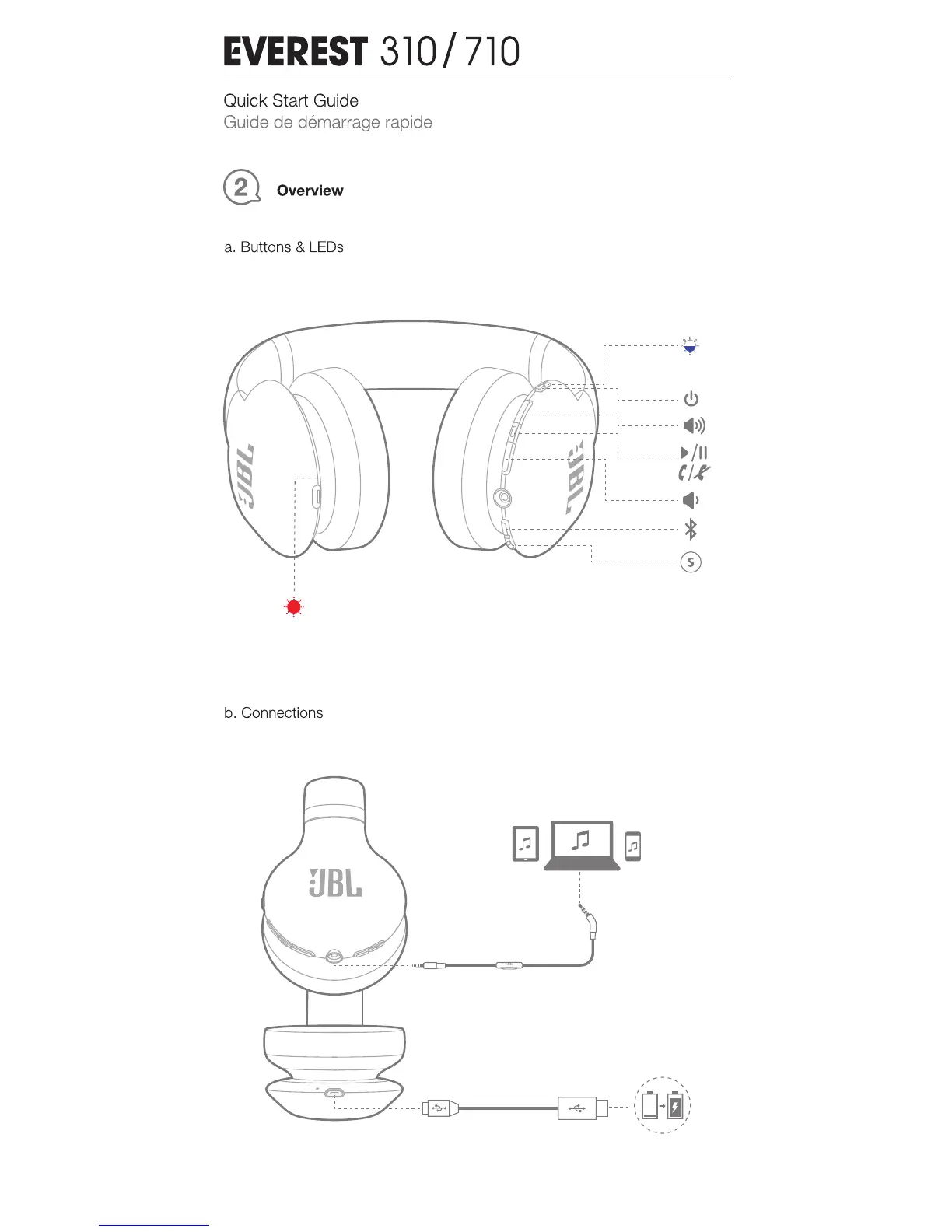 JBL Everest 710 - Product Overview; Buttons and LED Indicators; Audio Connections