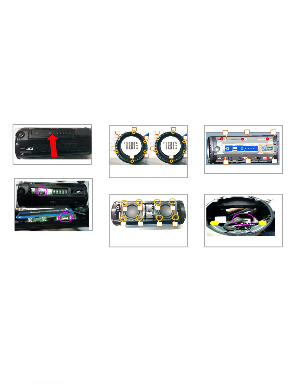 8.用电批将电池支架6颗螺丝取下如上图示位