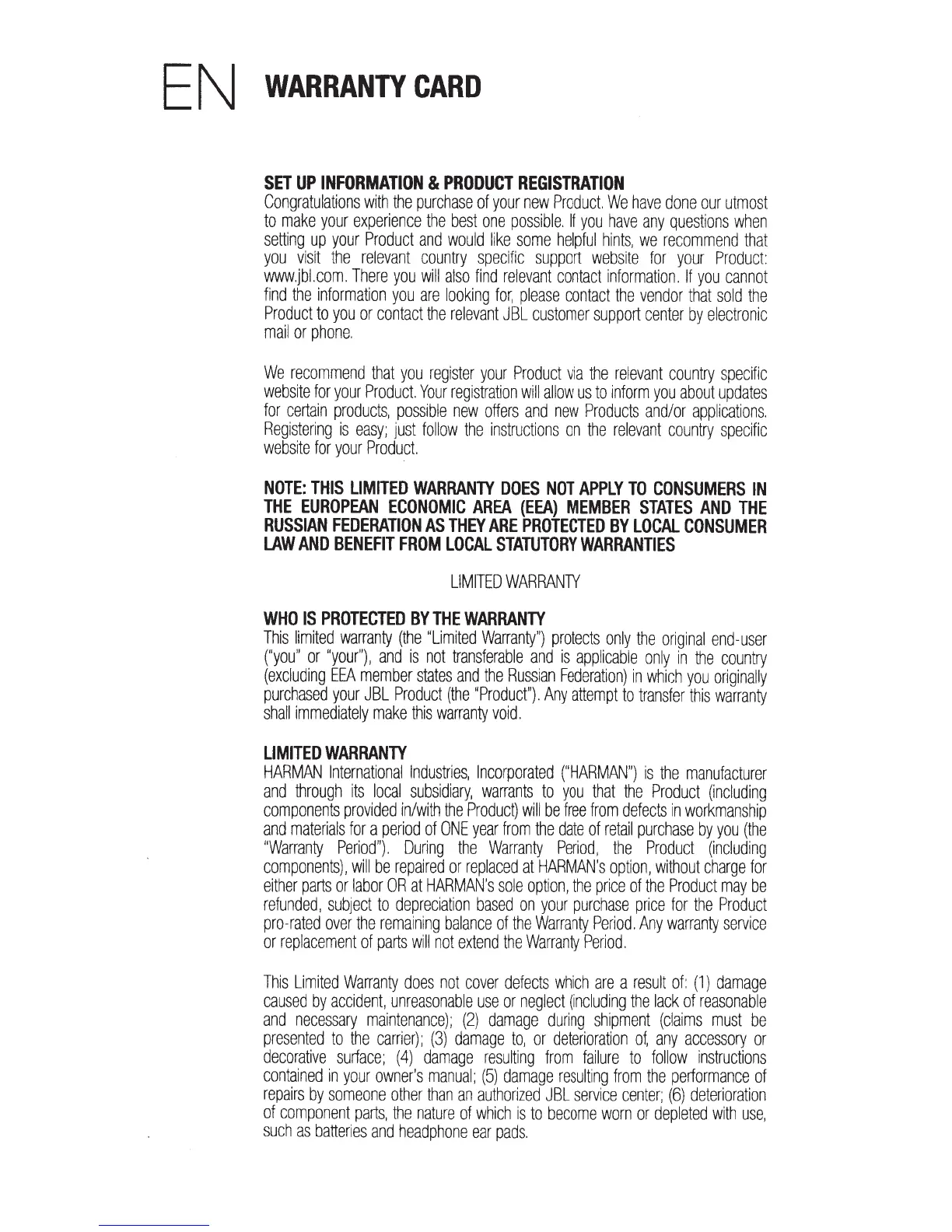 JBL FLIP3 - Warranty Information; Product Registration and Limited Warranty