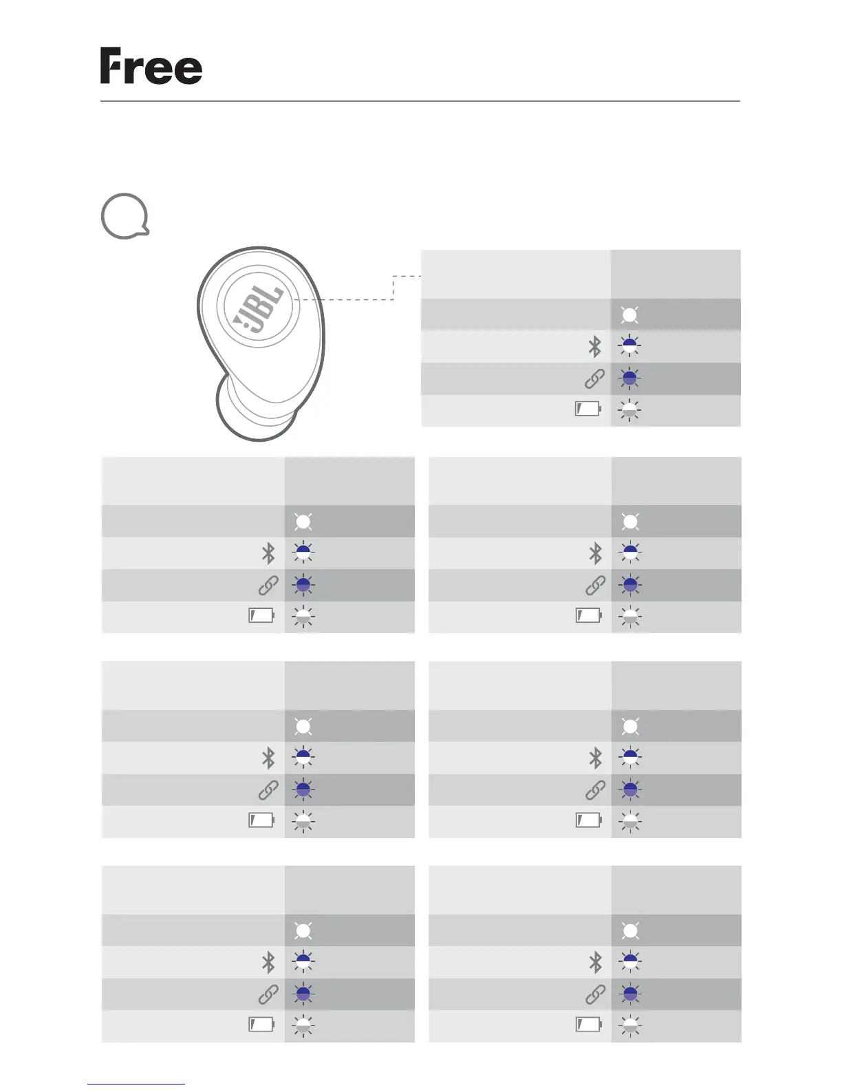 JBL Free - Indicators and Specifications; Earbud LED Behavior
