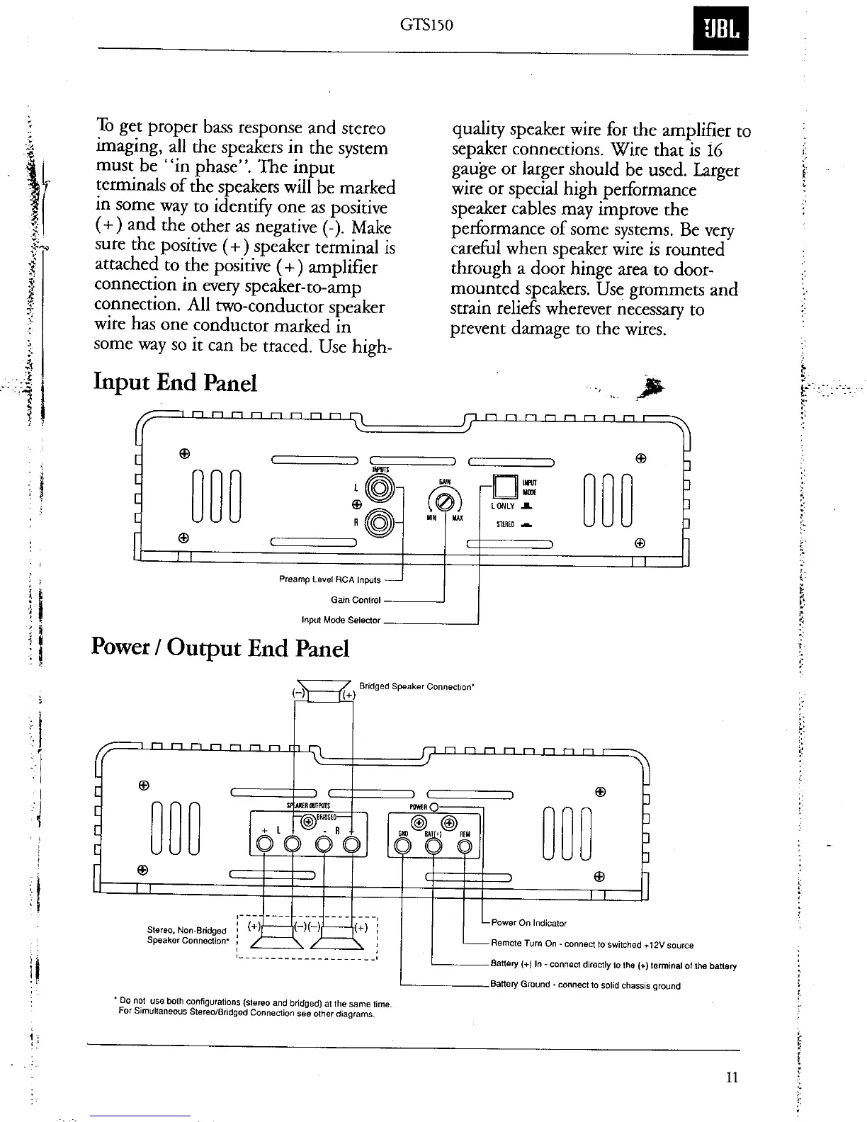 JBL GTS150 - Input End Panel; Power;Output End Panel