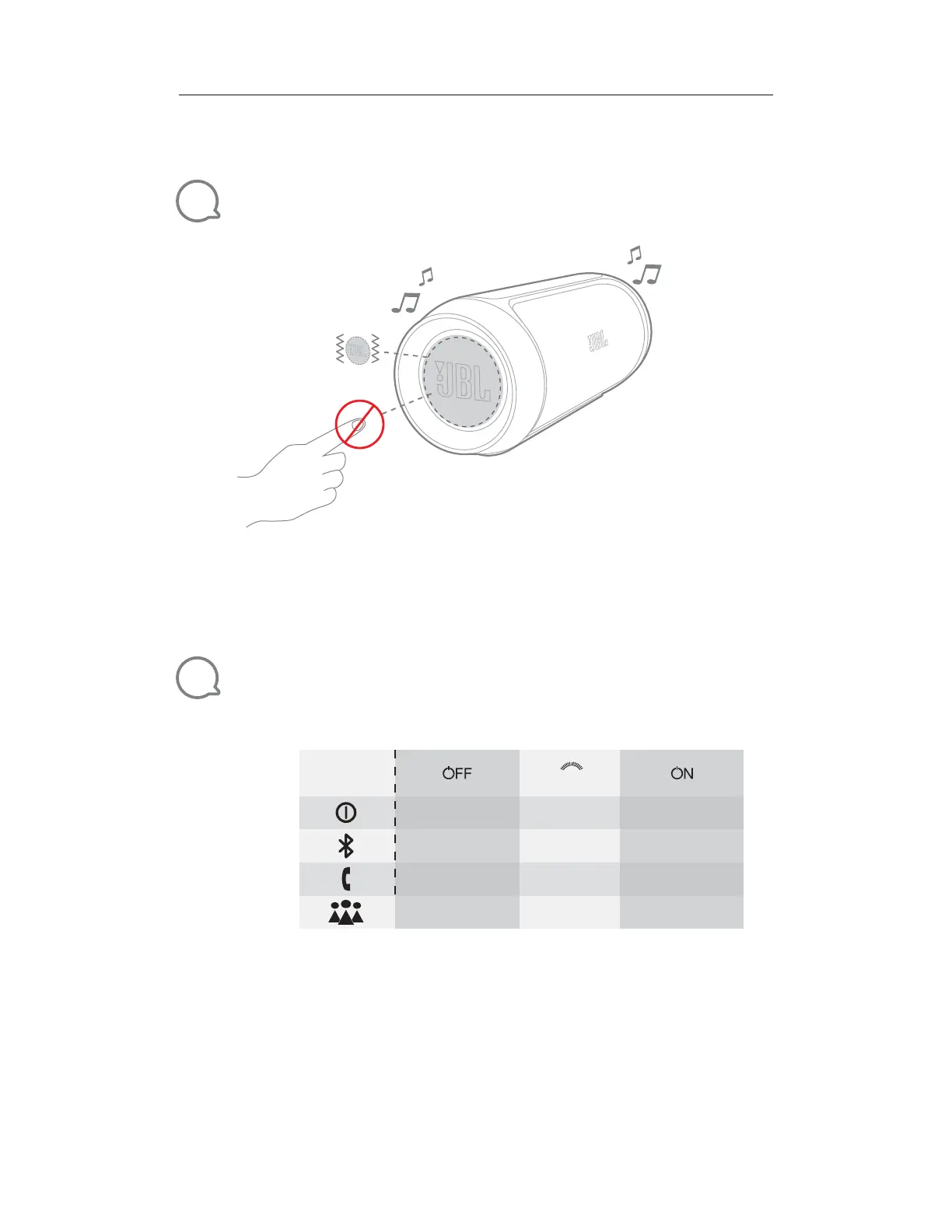 JBL Harman Charge 2 - Safety Warnings; LED Indicator Behavior
