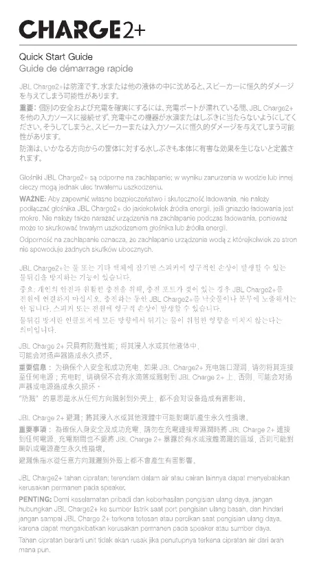 JBI_Charge2+ tahan cipratan; terendam talam ar atau cairan Iainnva dapat meryebabkan