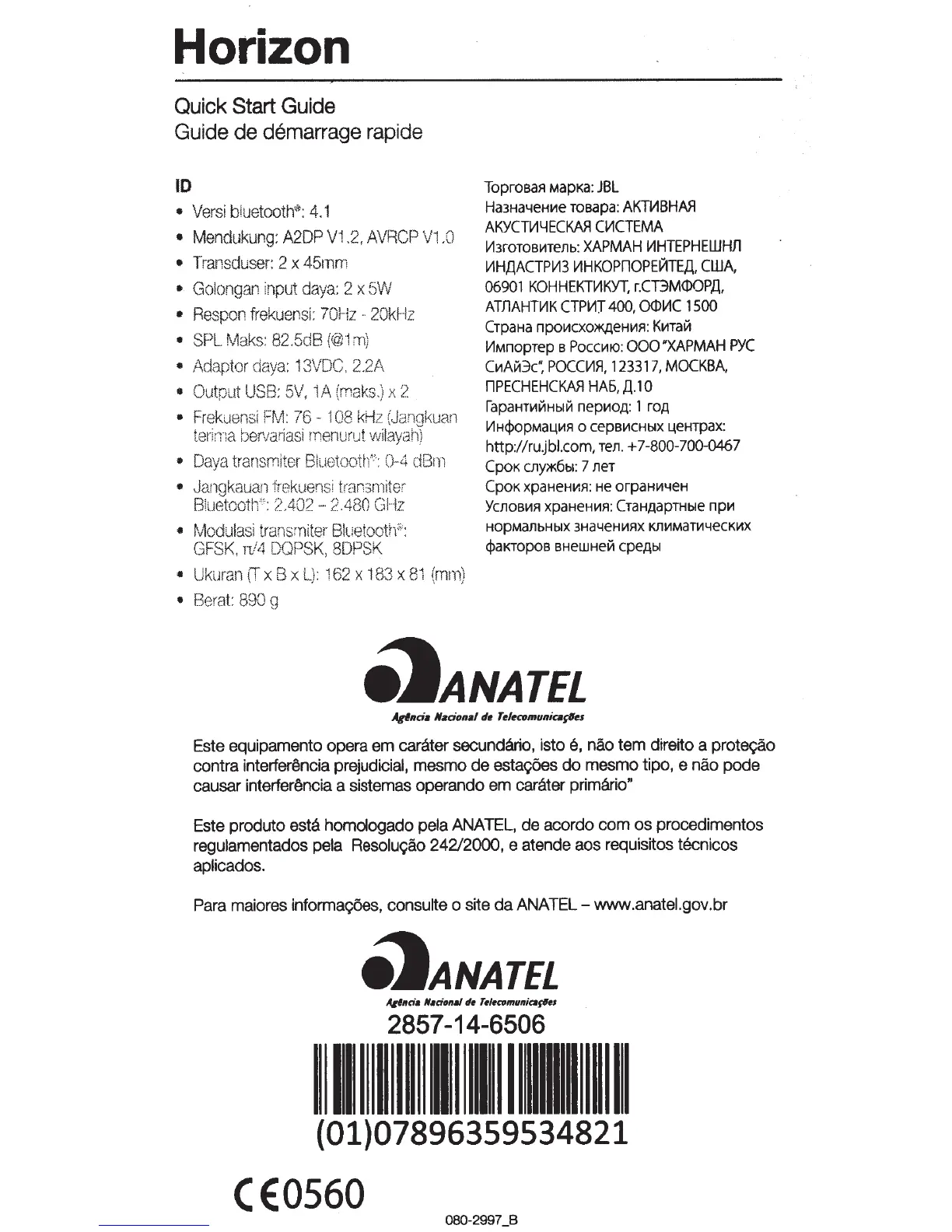 Other manuals for JBL Horizon