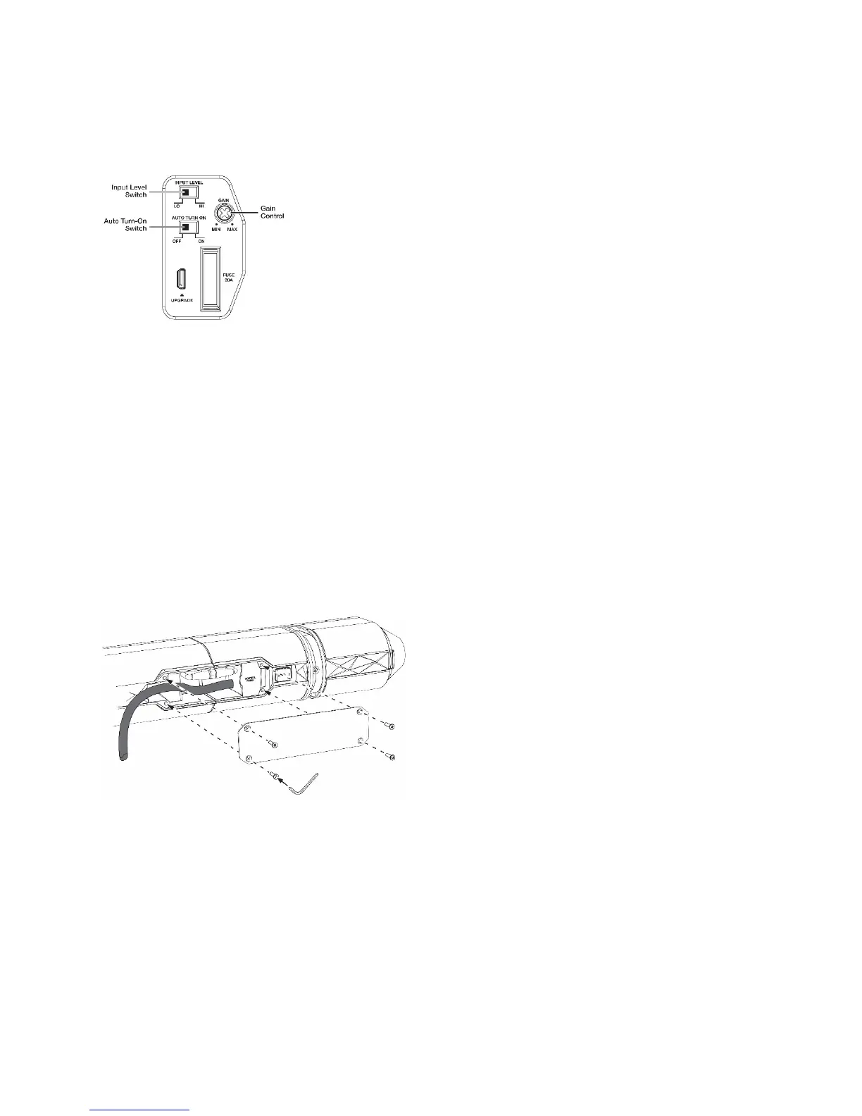 5.Beforeattachingtherearbridgeplate, youwillneedtosettheInputLevelswitch,AutoTurn‐On