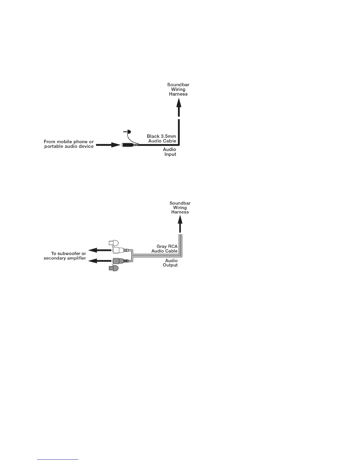 Connectthesubwooferorasecondaryamplifiertothesoundbar’s(gray)audiooutputcable,asshown