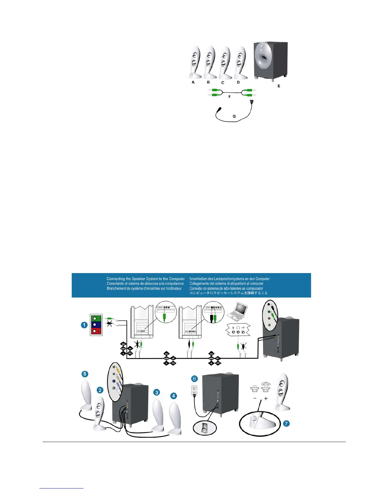 Schritt 1 Das Lautsprechersystem an den Computer anschließen.