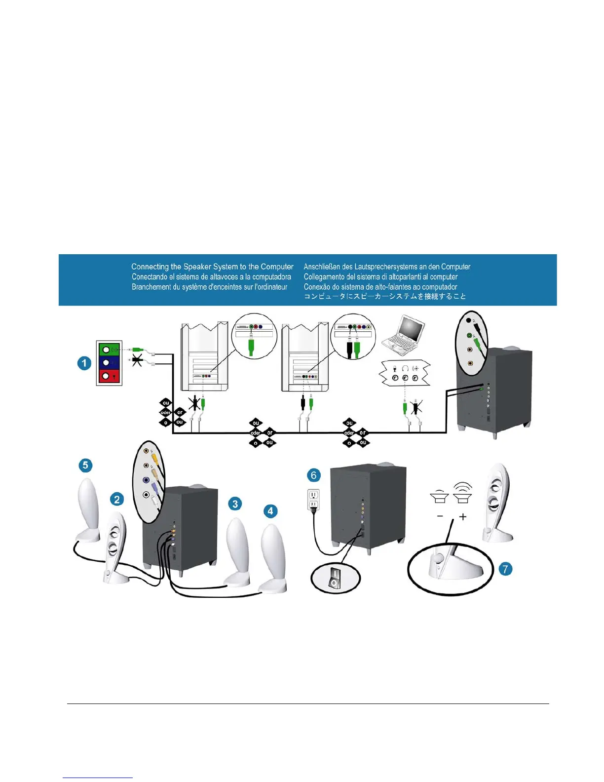 タを、コンピュータの緑色ジャックに差し込みます。サウンド出力を内蔵したコンピュータやポータブルコンピュータの場合は、サブウーフ