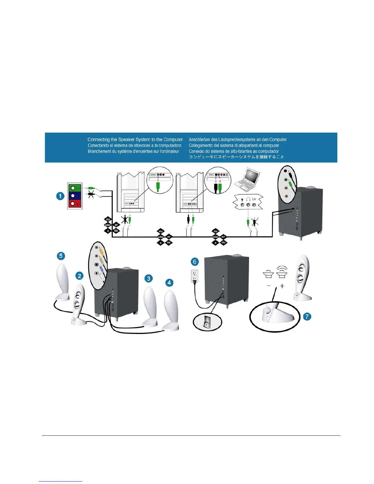 Connect the speaker system as shown in the Connecting the speaker system to sound card illustrations. Once the speaker