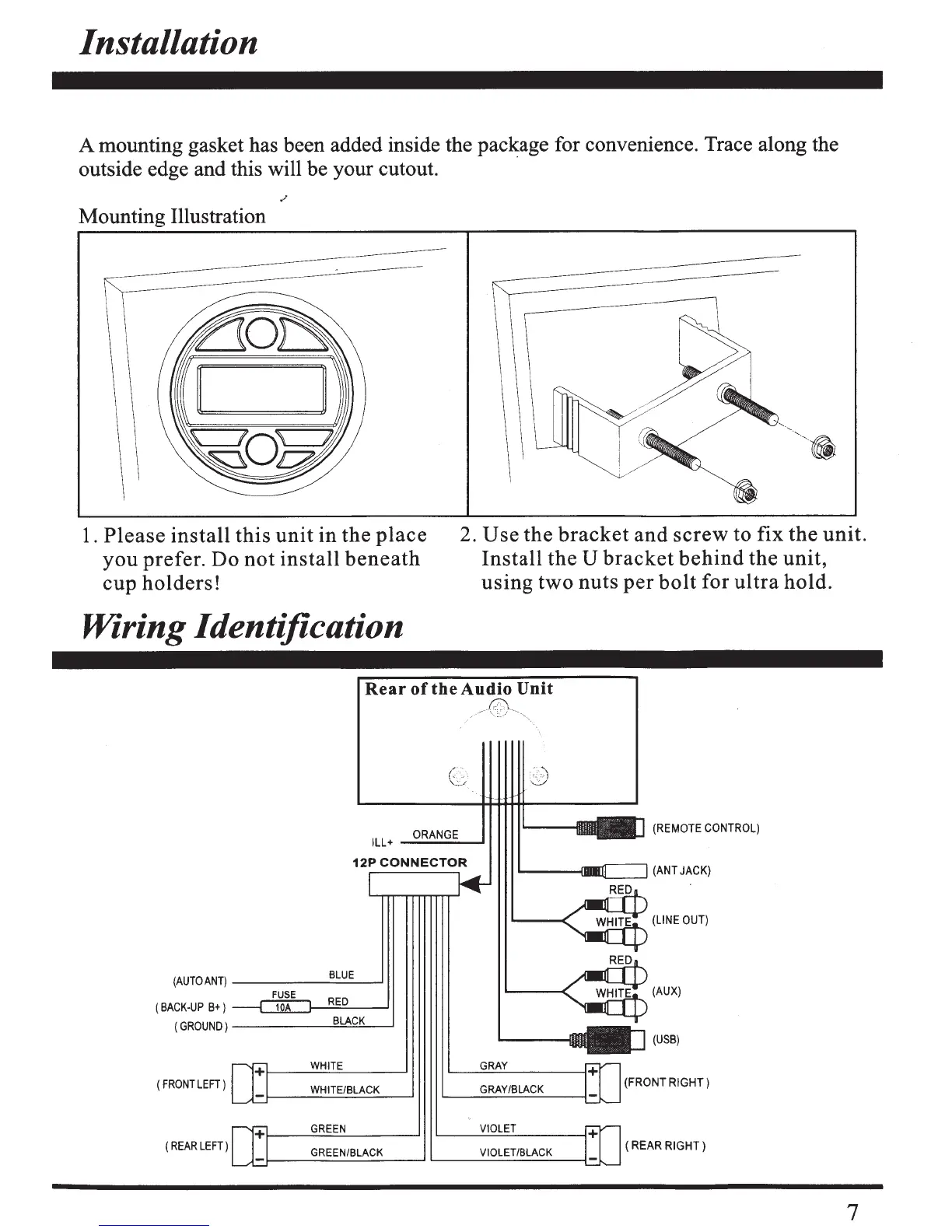 JBL JBL-PRV175 - Installation; Mounting Gasket and Cutout; Unit Mounting Procedure; Wiring Identification