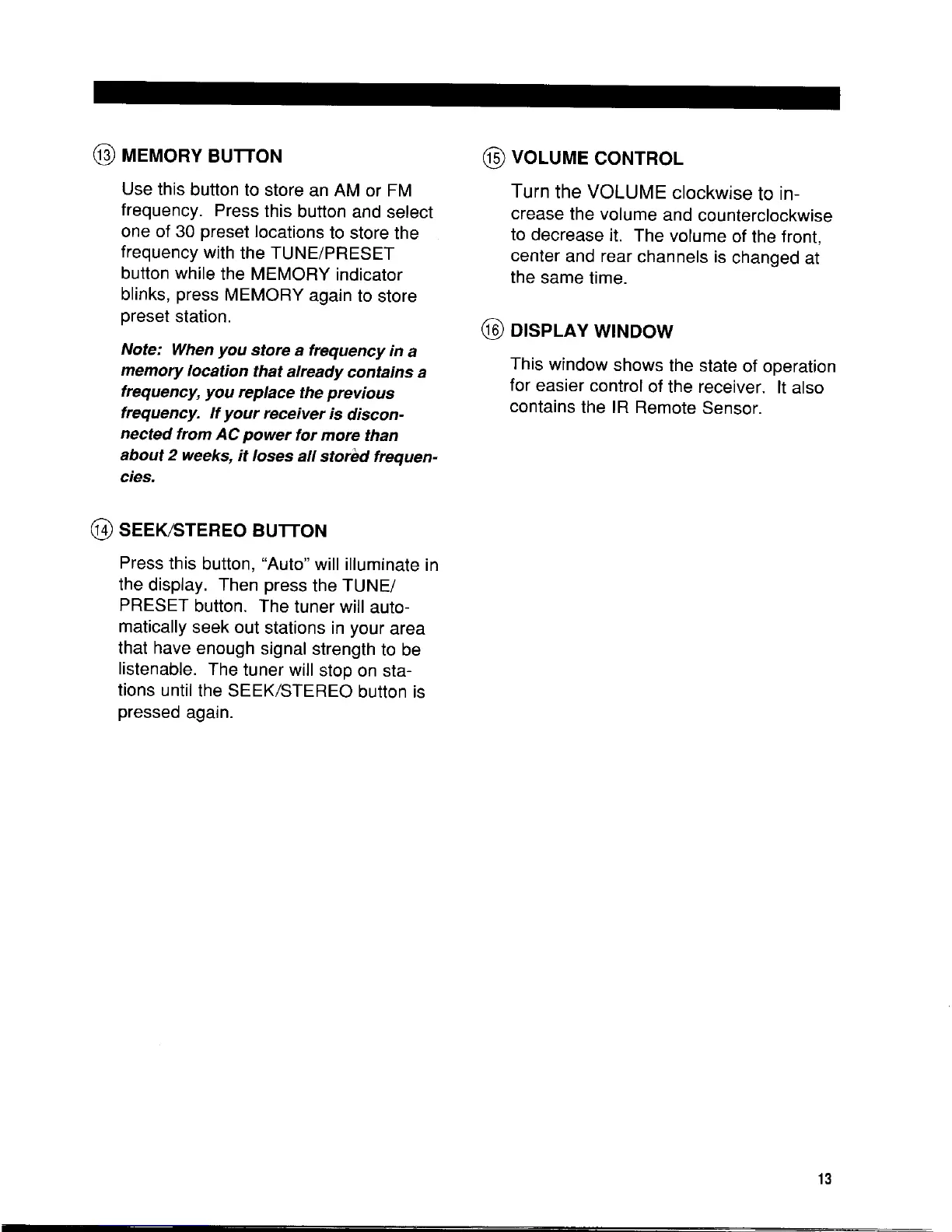 JBL JSR 635 - Front Panel Controls - Functions; Memory and Seek;Stereo Functions; Volume and Display