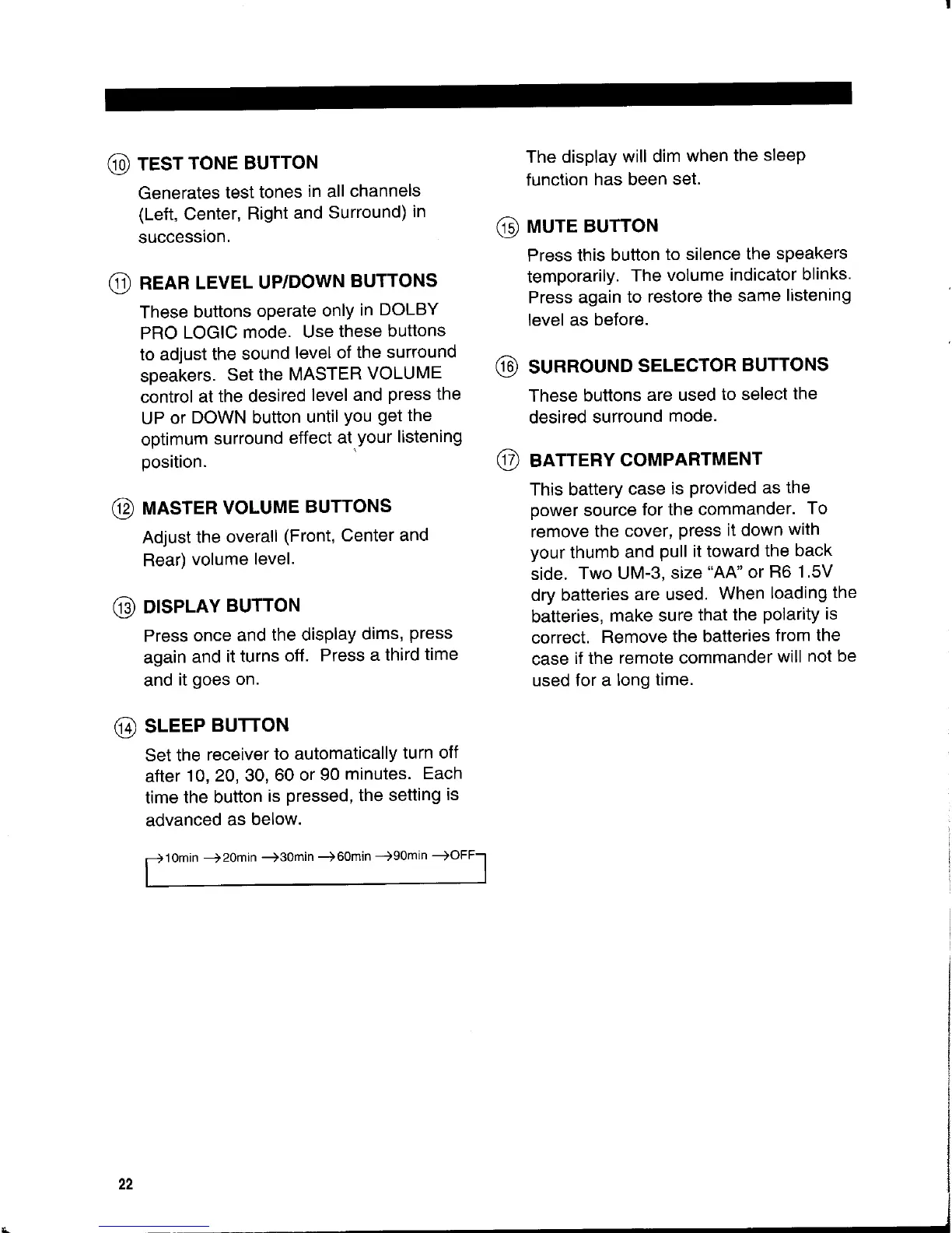 JBL JSR 635 - Remote Control Operation - Controls; Audio, Surround, and Volume Controls; Display, Sleep, and Battery