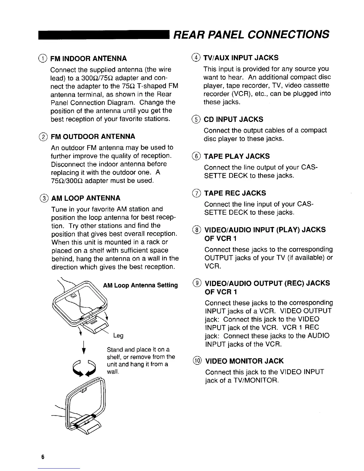 JBL JSR 635 - Rear Panel Connections - Inputs; Antenna and Input Jacks; VCR and Tape Connections