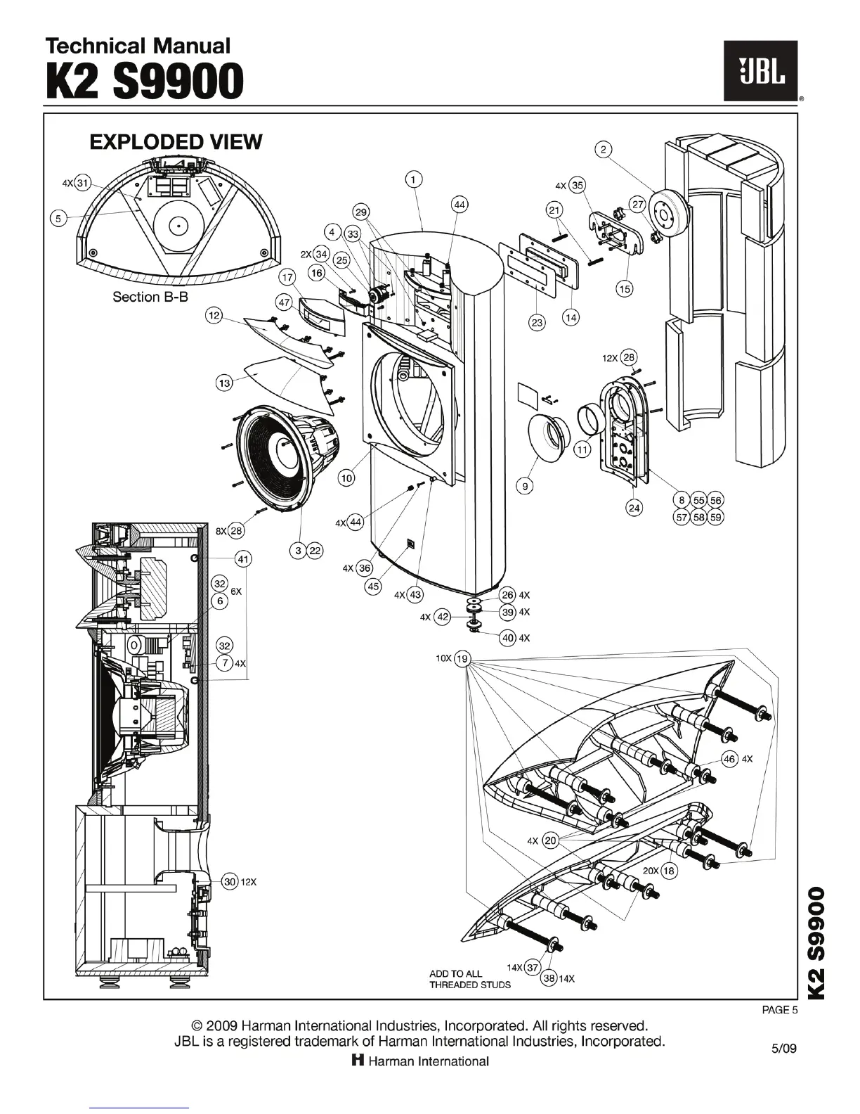 JBL K2 S9900 - Parts Identification; Exploded View Diagram