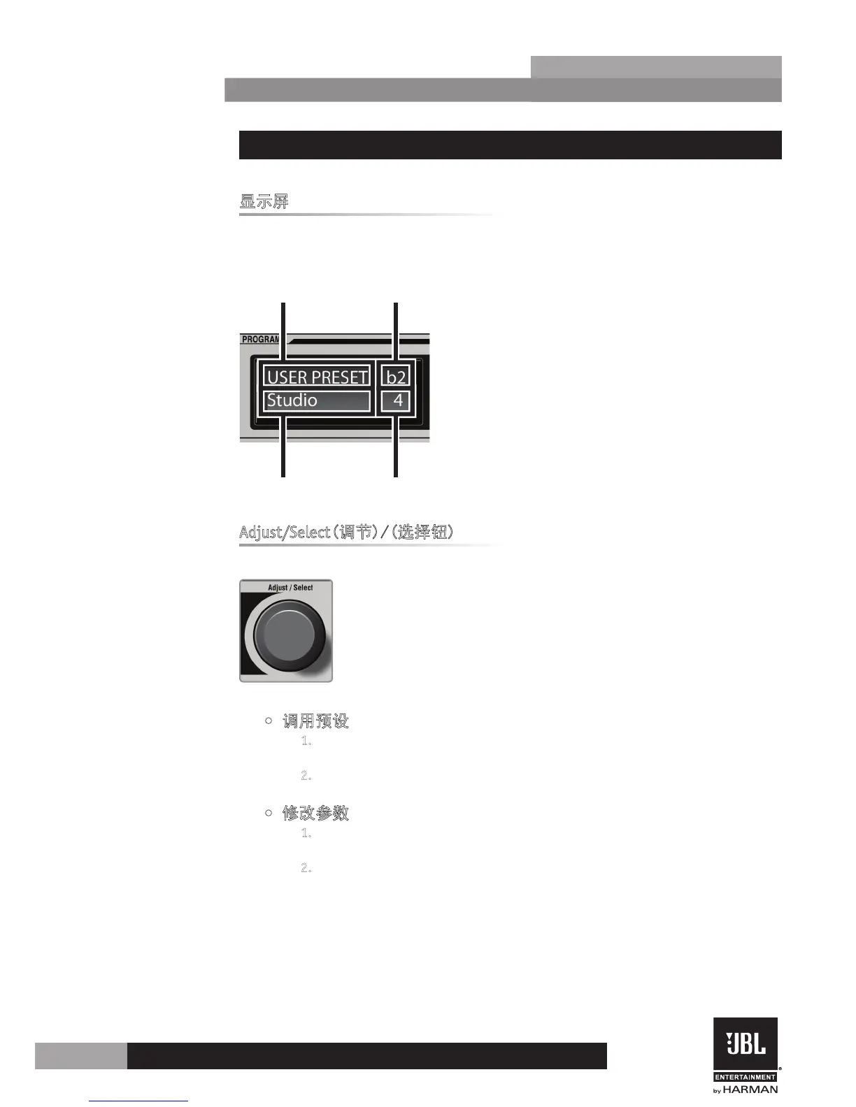 2. 选中需要调用的预设再按下Adjust/Select(调节)/(选择钮)调用预设。