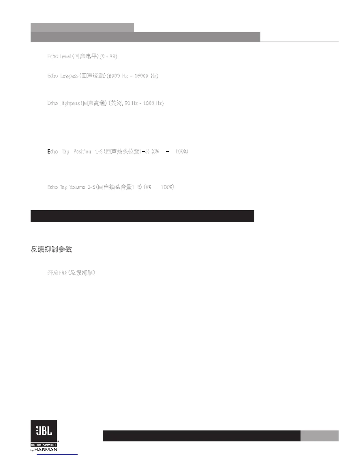 • Echo Tap Volume 1-6(回声抽头音量1-6)(0% - 100%)--设置抽头的音量。每个抽头包