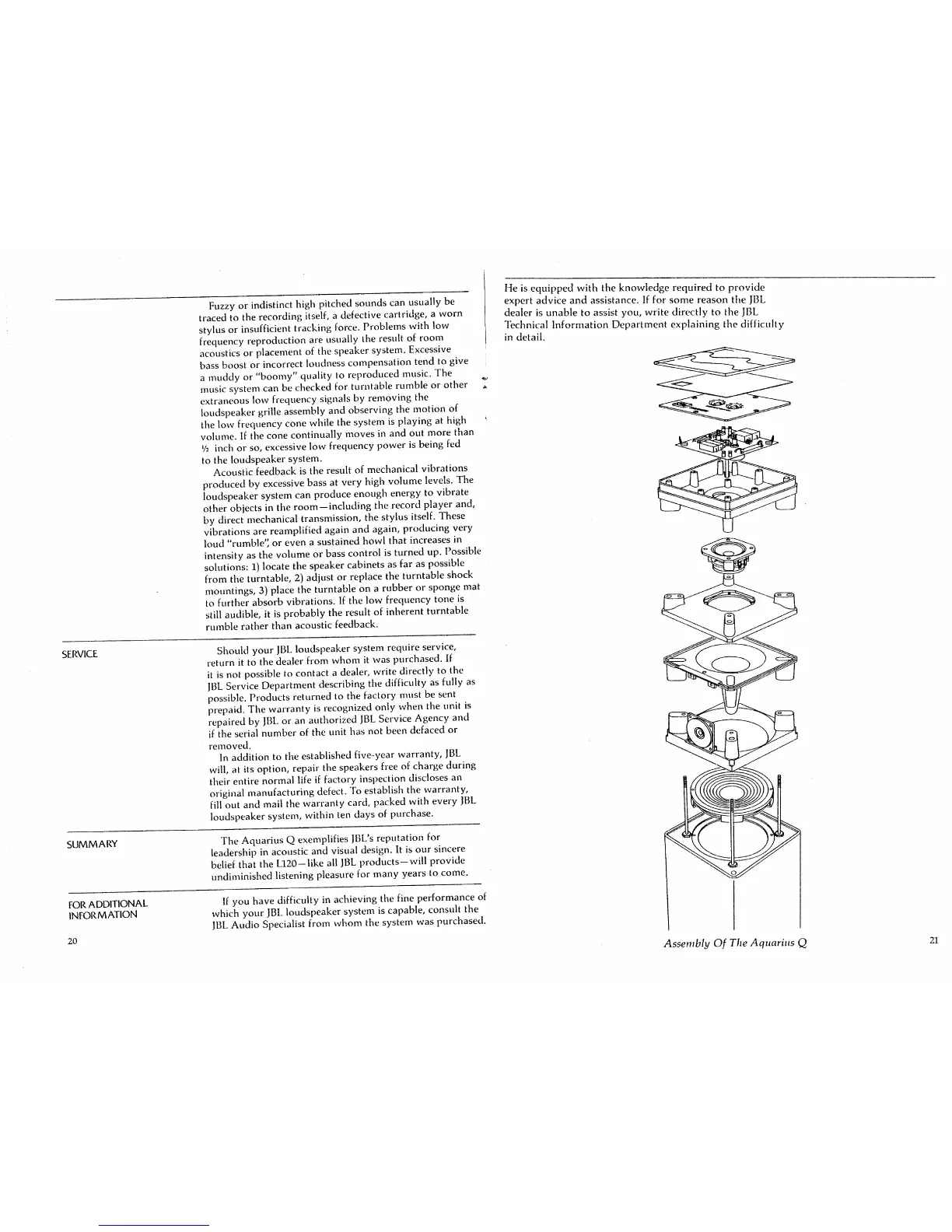 JBL L120 - Service and Support; Service and Warranty Information