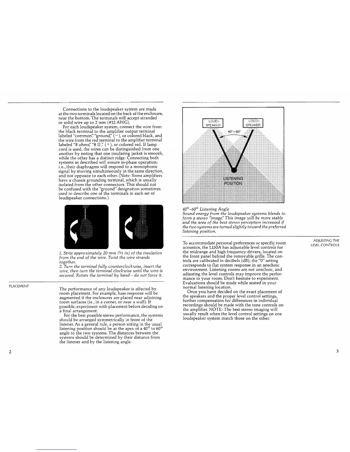 JBL L150A - Placement and Listening Position; Optimal Listening Angle; Adjusting Level Controls