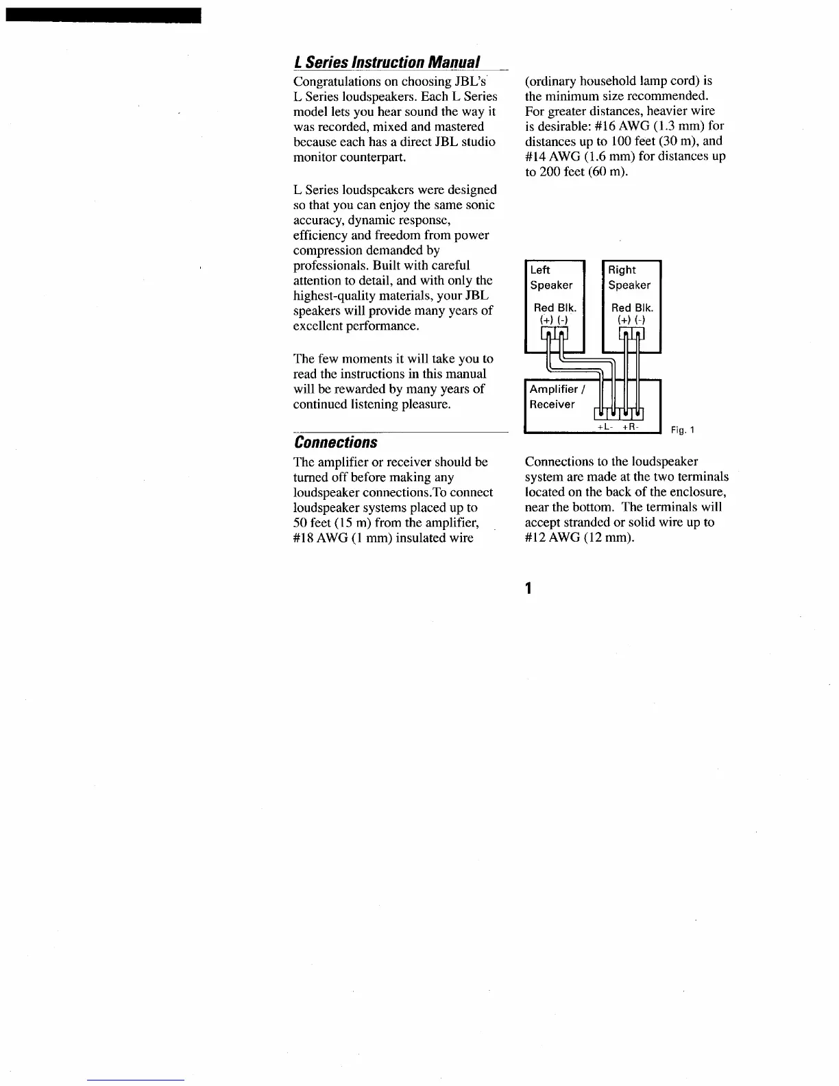 JBL L20T3 - Connections; Connecting Loudspeakers; Wire Gauge Recommendations