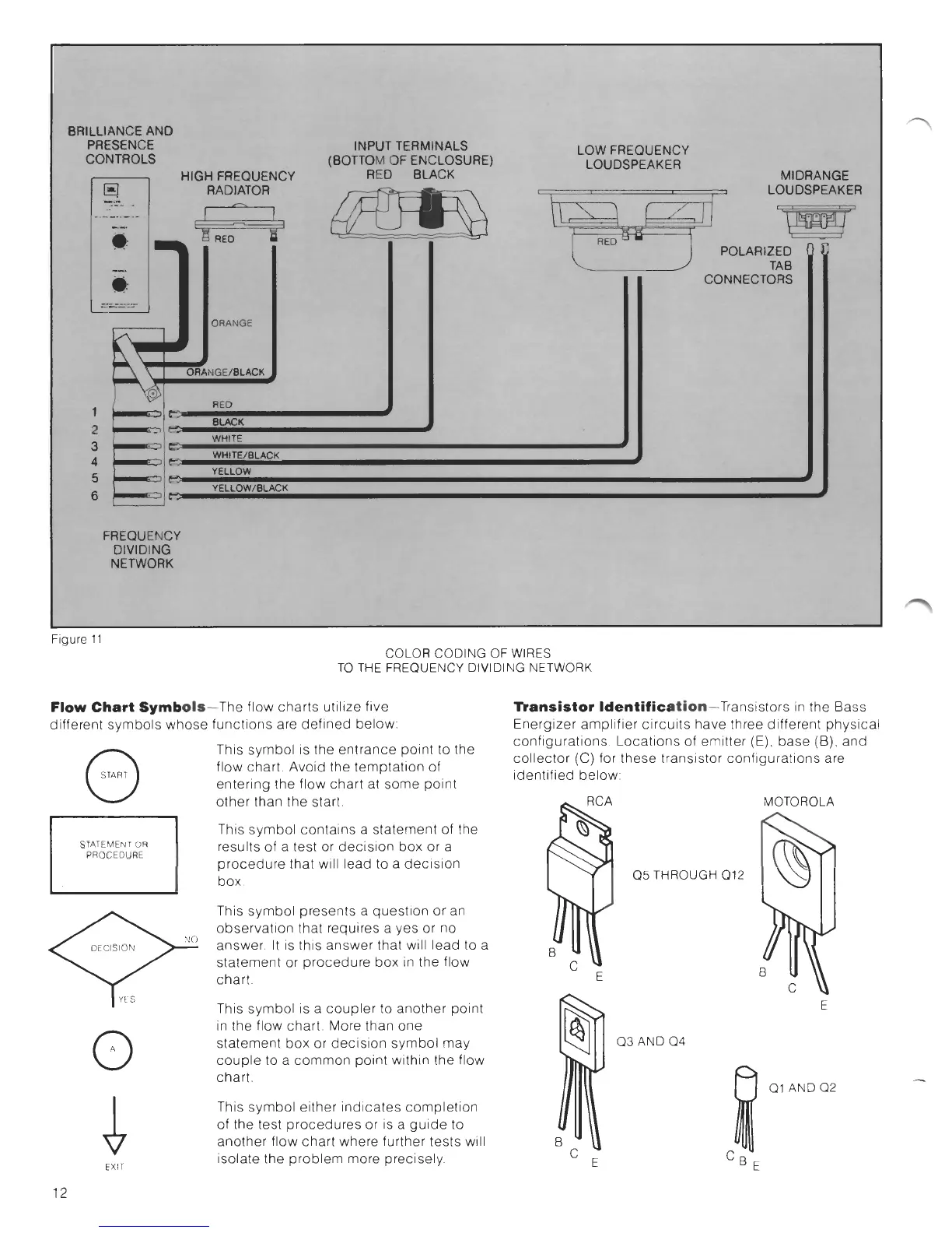 JBL L212 - Flow Chart Symbols; Transistor Identification; Color Coding of Wires of the Frequency Dividing Network