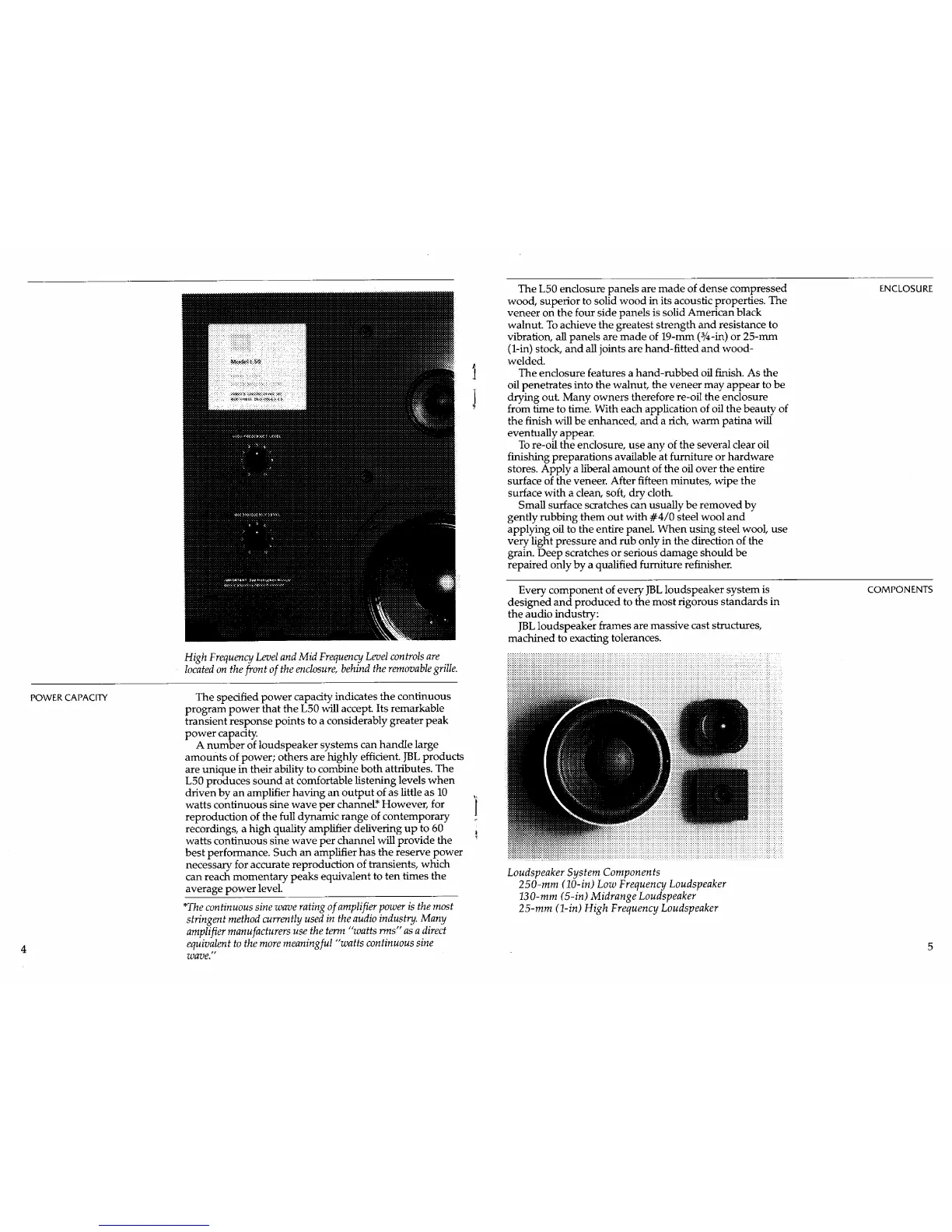 JBL L50 - Power Capacity; Enclosure; Components
