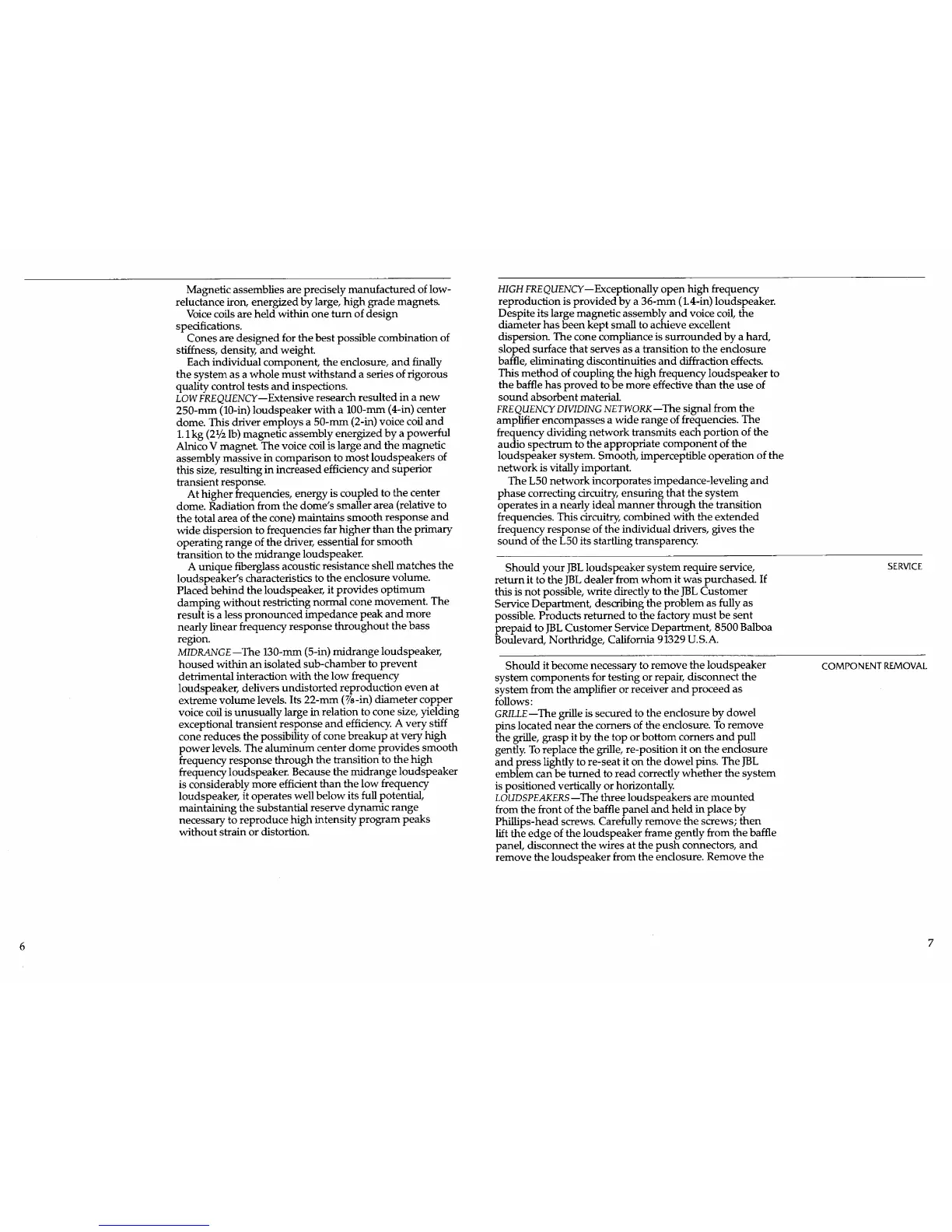 JBL L50 - Service; Component Removal