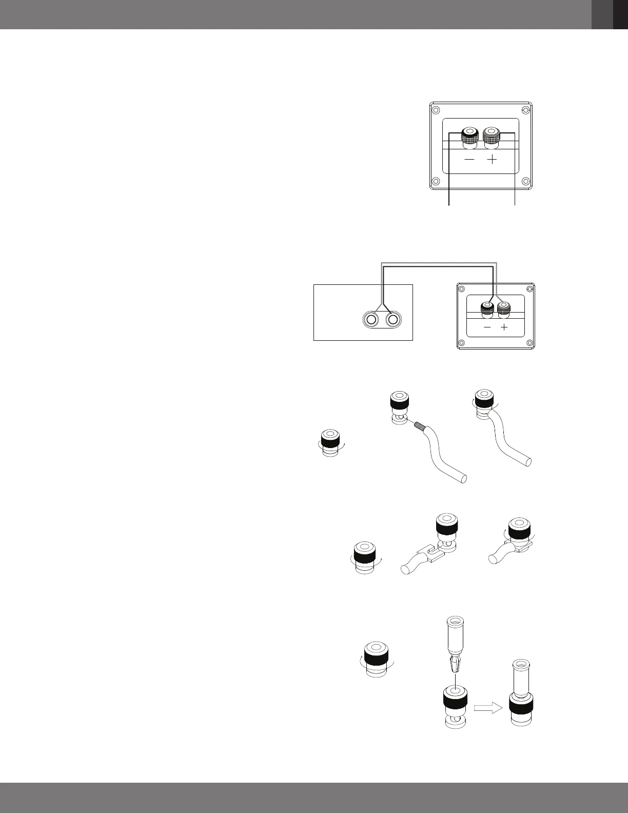 Lautsprecher und Verstärker verfügen über zueinander passende positive und negative
