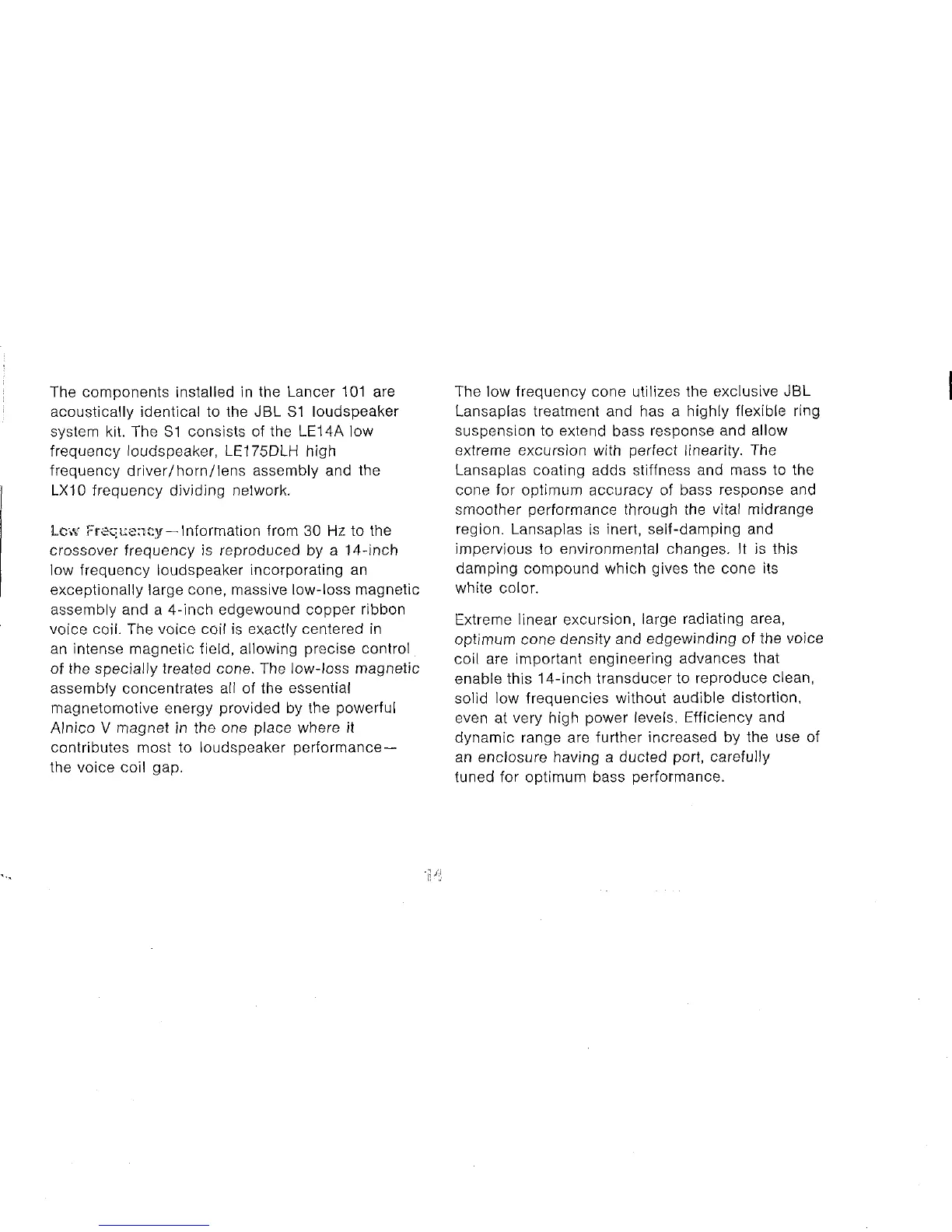 JBL Lancer L101 - Low Frequency Loudspeaker Details