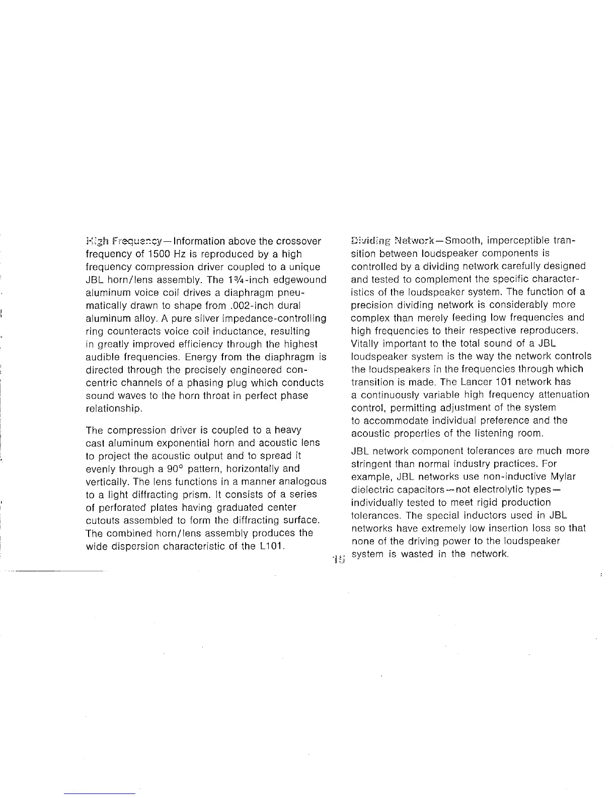JBL Lancer L101 - High Frequency Driver Assembly; Dividing Network