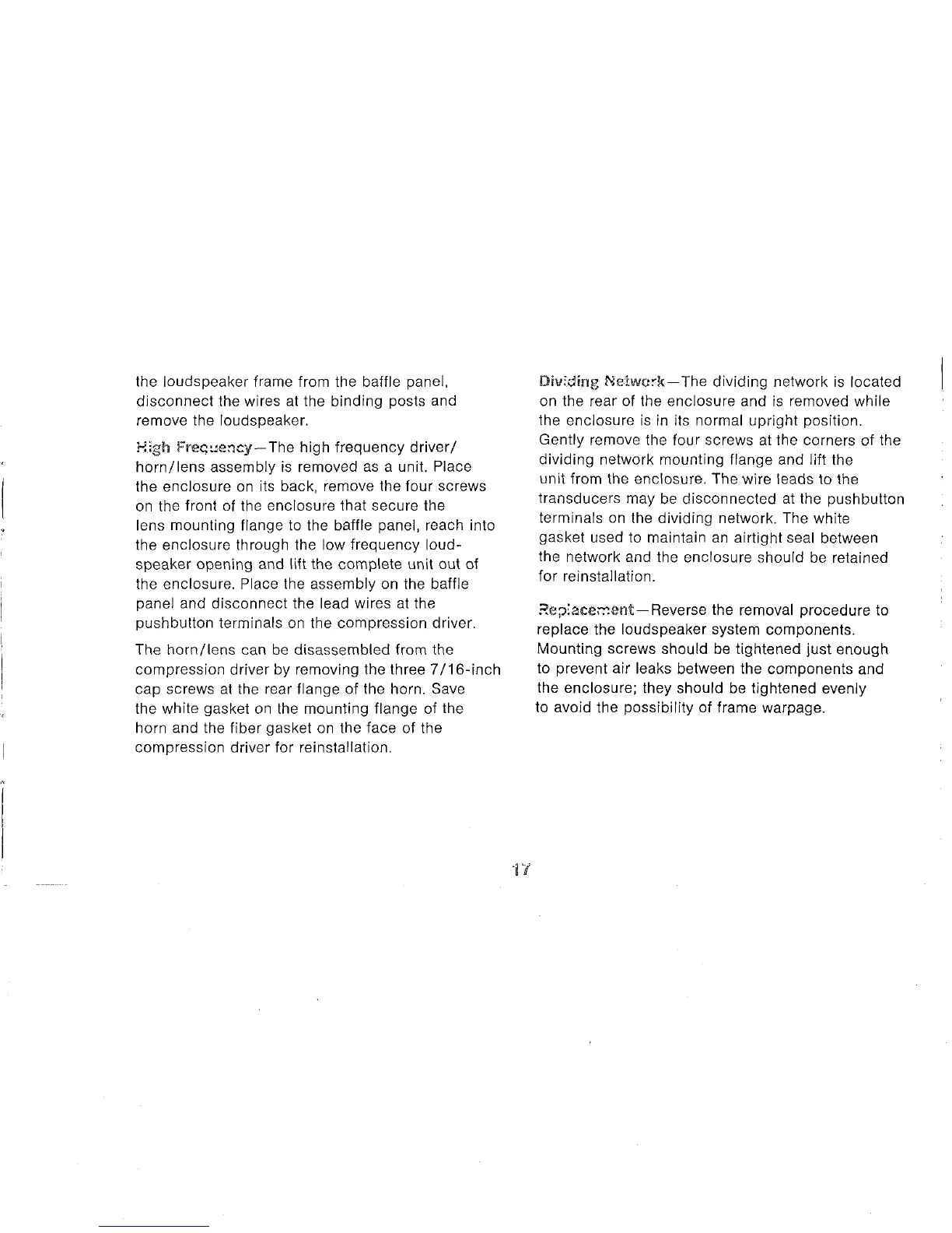 JBL Lancer L101 - High Frequency Driver and Dividing Network Removal; Reinstallation Guidelines