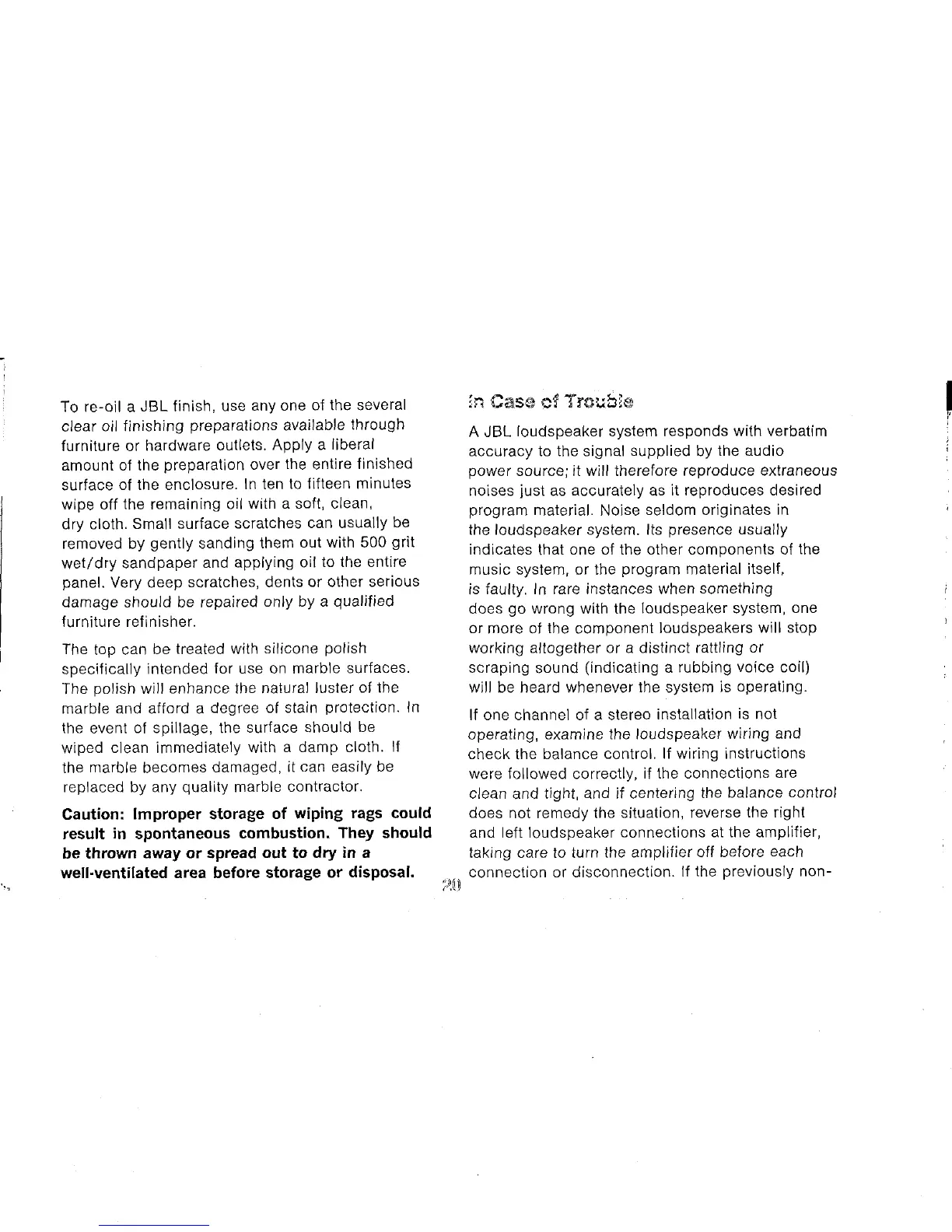 JBL Lancer L101 - In Case of Trouble; Troubleshooting Loudspeaker Issues