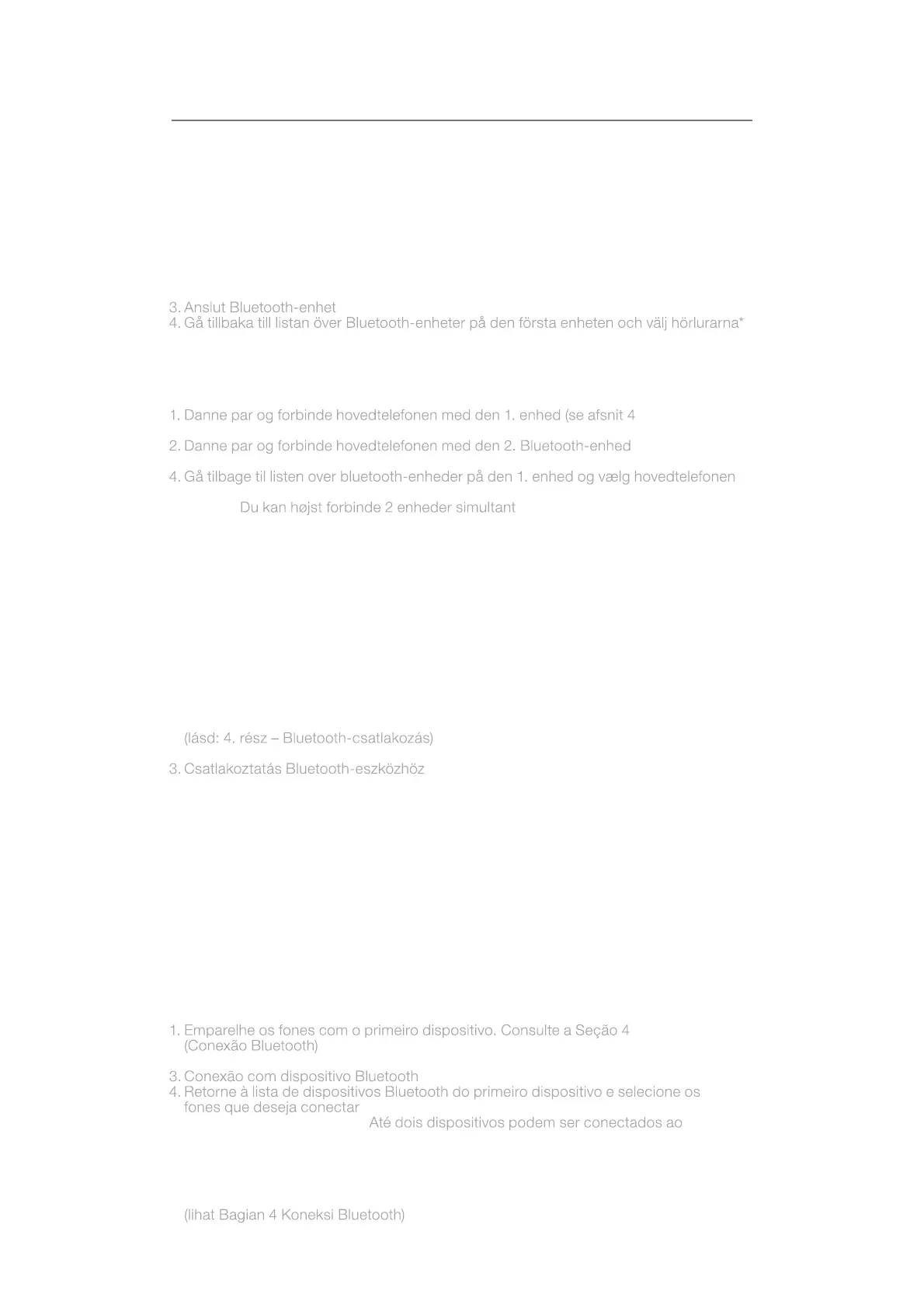 1. Parkoppla och anslut hörlurarna med den första enheten (se avsnitt 4
