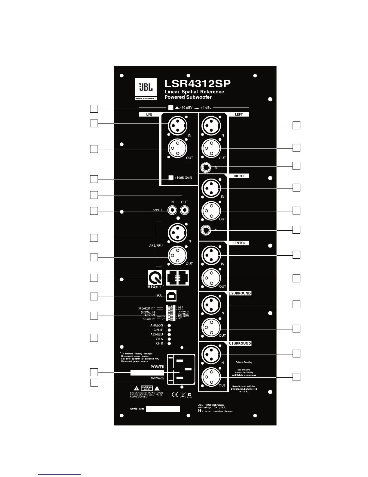 JBL LSR4312SP - Rear Panel Connections
