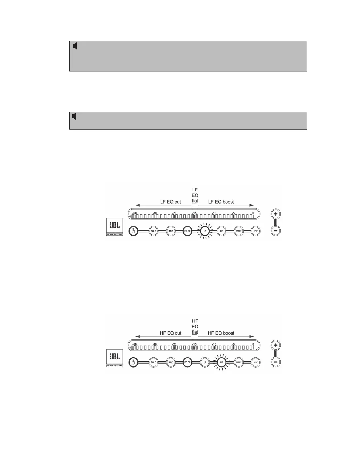 + button to increase the amount of LF EQ in 0.25 dB steps or press the – button to