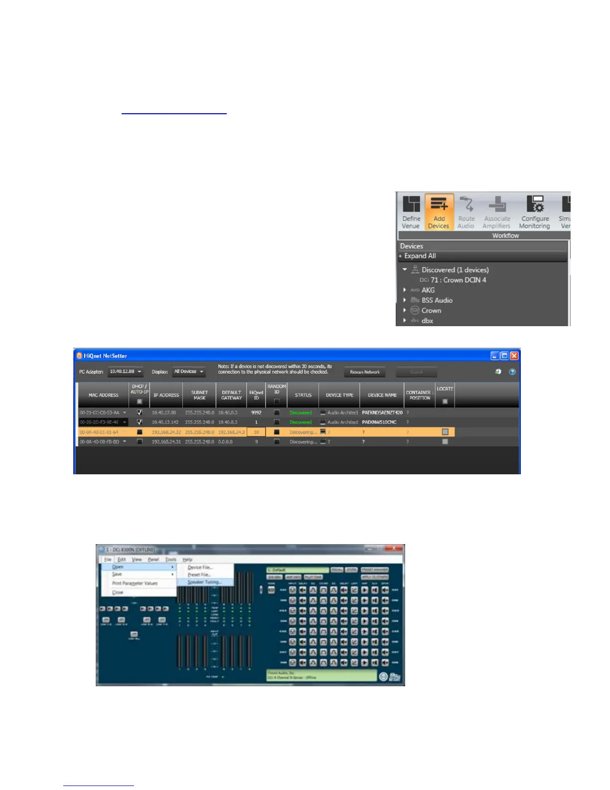 discover HiQnet devices and reconfigure network settings