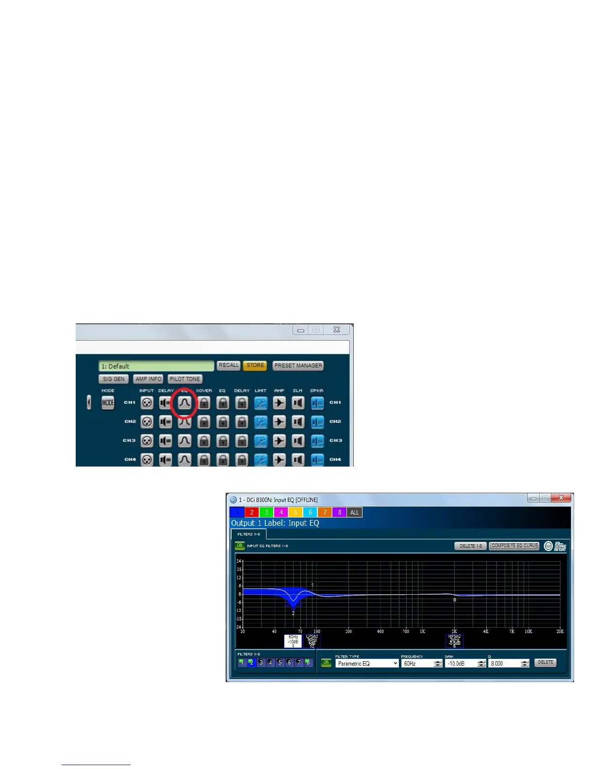 “locked” EQ used for speaker tuning profile, eight additional bands of EQ per channel are available and can be used