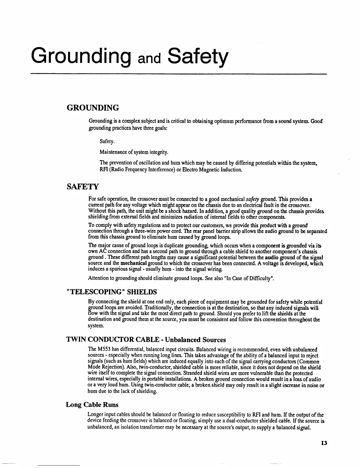 JBL M553 - Grounding and System Safety; Grounding Principles for Audio Systems; Cable Handling and Ground Loop Prevention