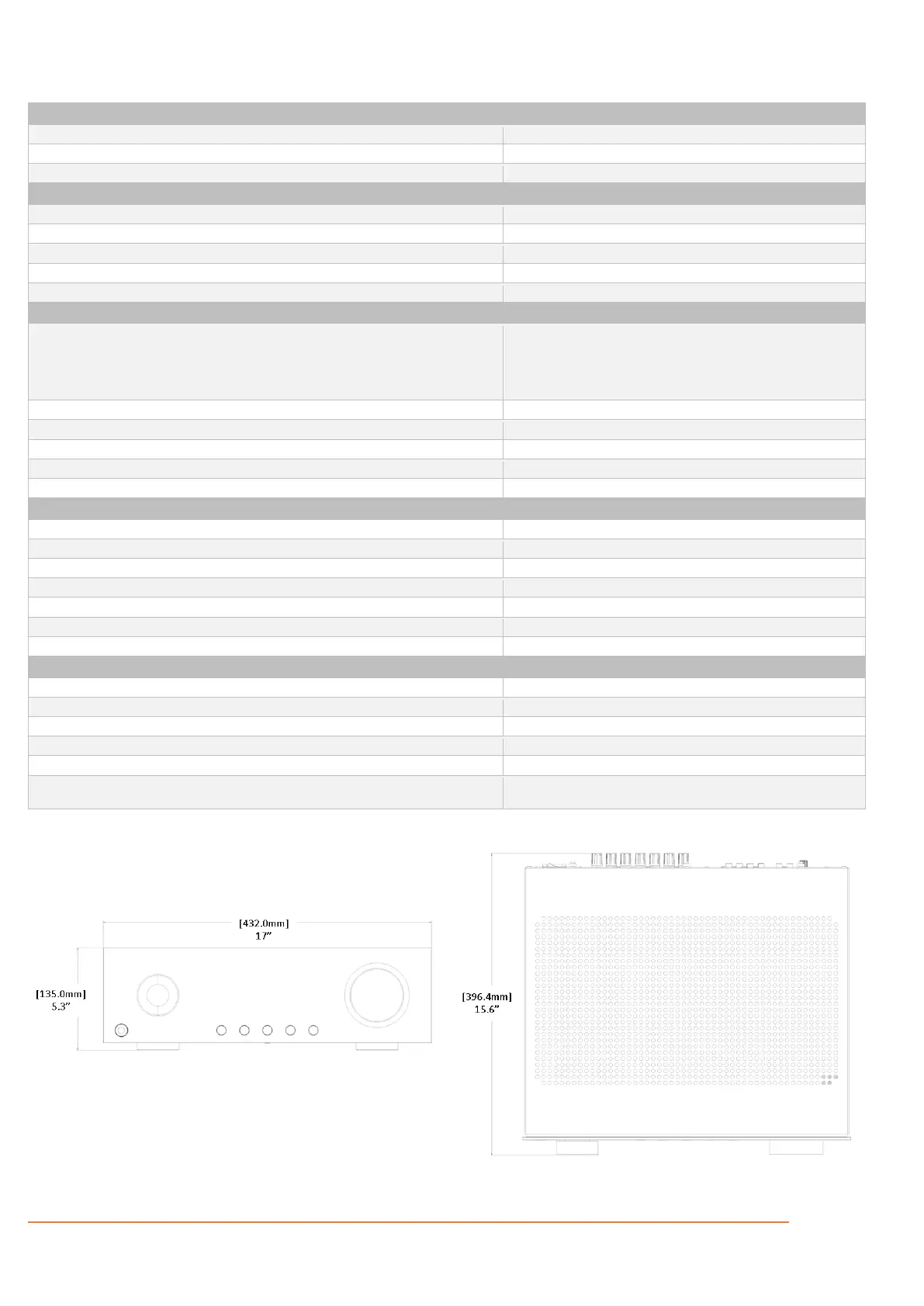 Dimensions incl. feet and speaker terminals (H x W x D)