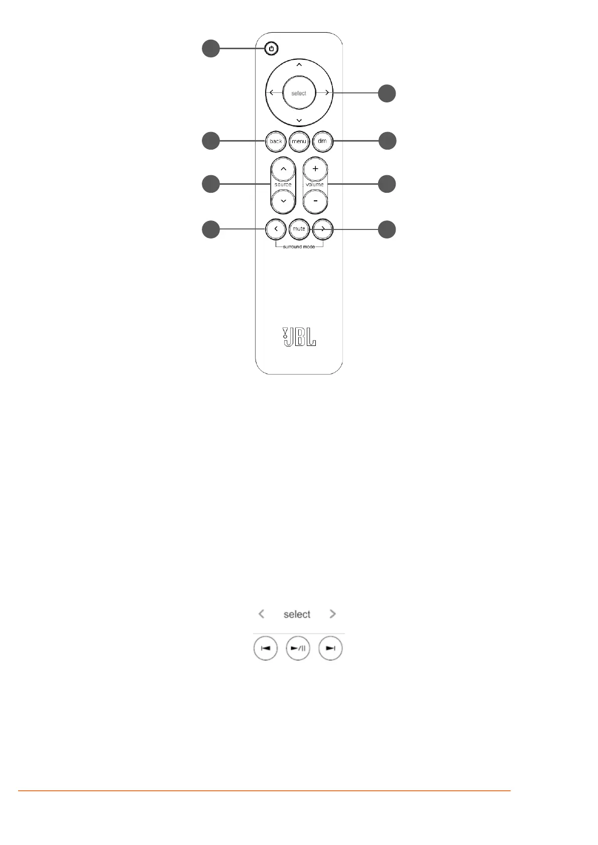 *Use Select, and Left/Right curser buttons on the remote control as transport keys for Bluetooth and Network Audio streaming sources