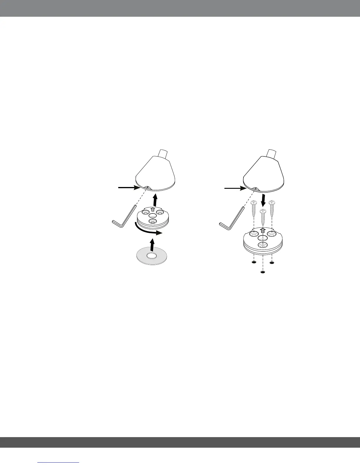 2. Holding the mounting plate in position, fasten it to the surface with three enclosed mounting